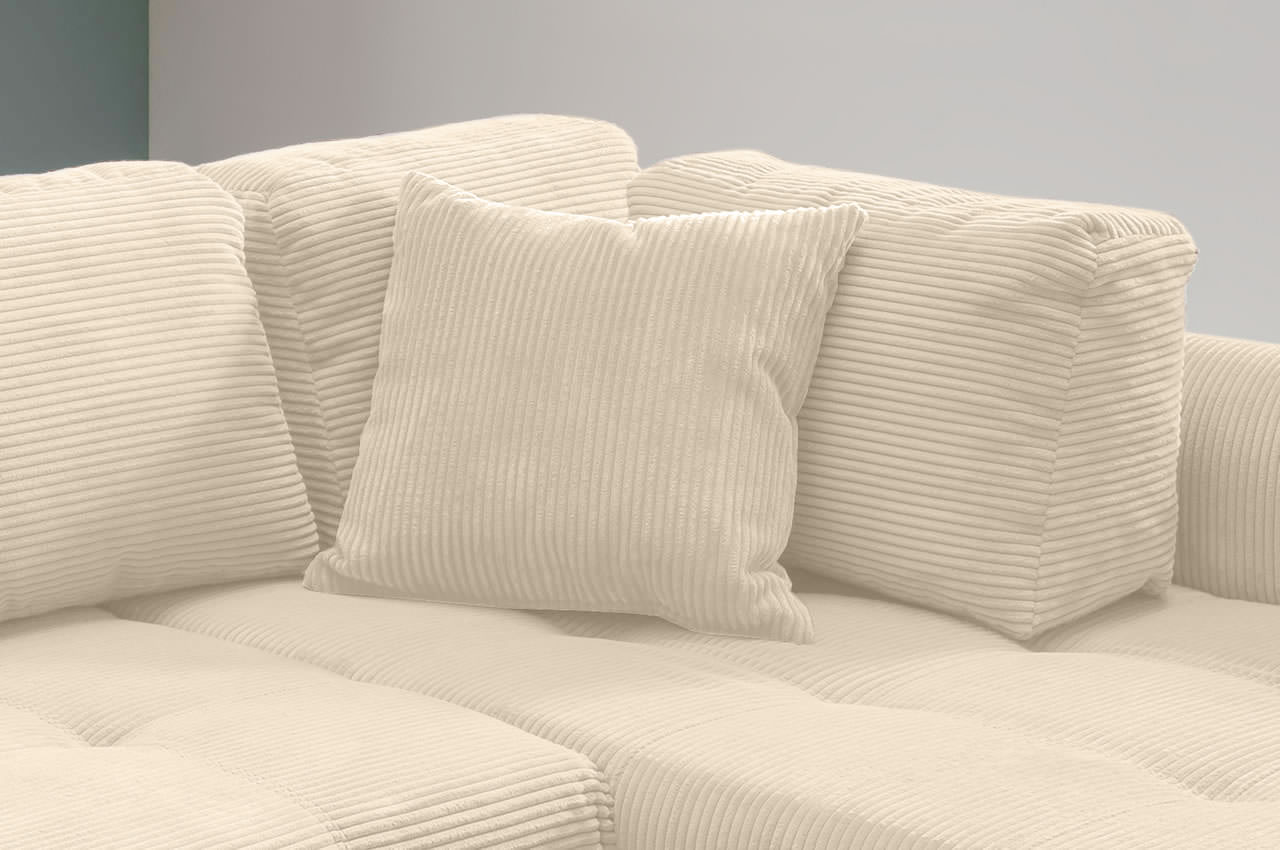 - Bettkasten: Der Stauraum befindet sich unter der Recamiere auf der rechten Seite und bietet genug Platz um die kuscheligen Kissen zu verstauen, wenn auf dem Sofa geschlafen wird.