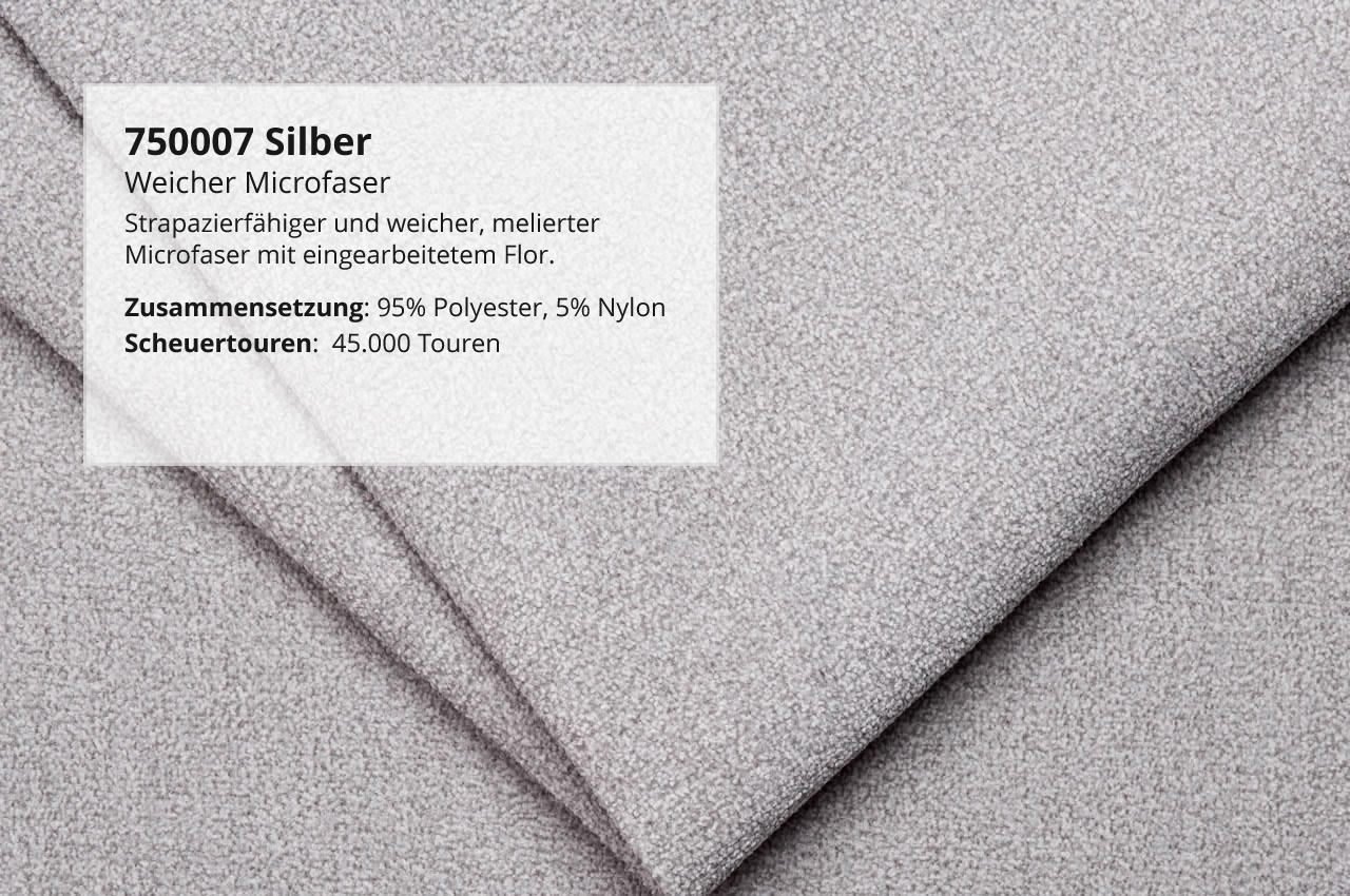 - Weicher Microfaser Tonia: Der Bezug ist durch den eingearbeiteten Flor besonders weich. Wählen Sie aus den Farben 750001 Creme, 750004 Rot, 750007 Silber, 750008 Grau, 750011 Anthrazit und 750013 Flamingo.
