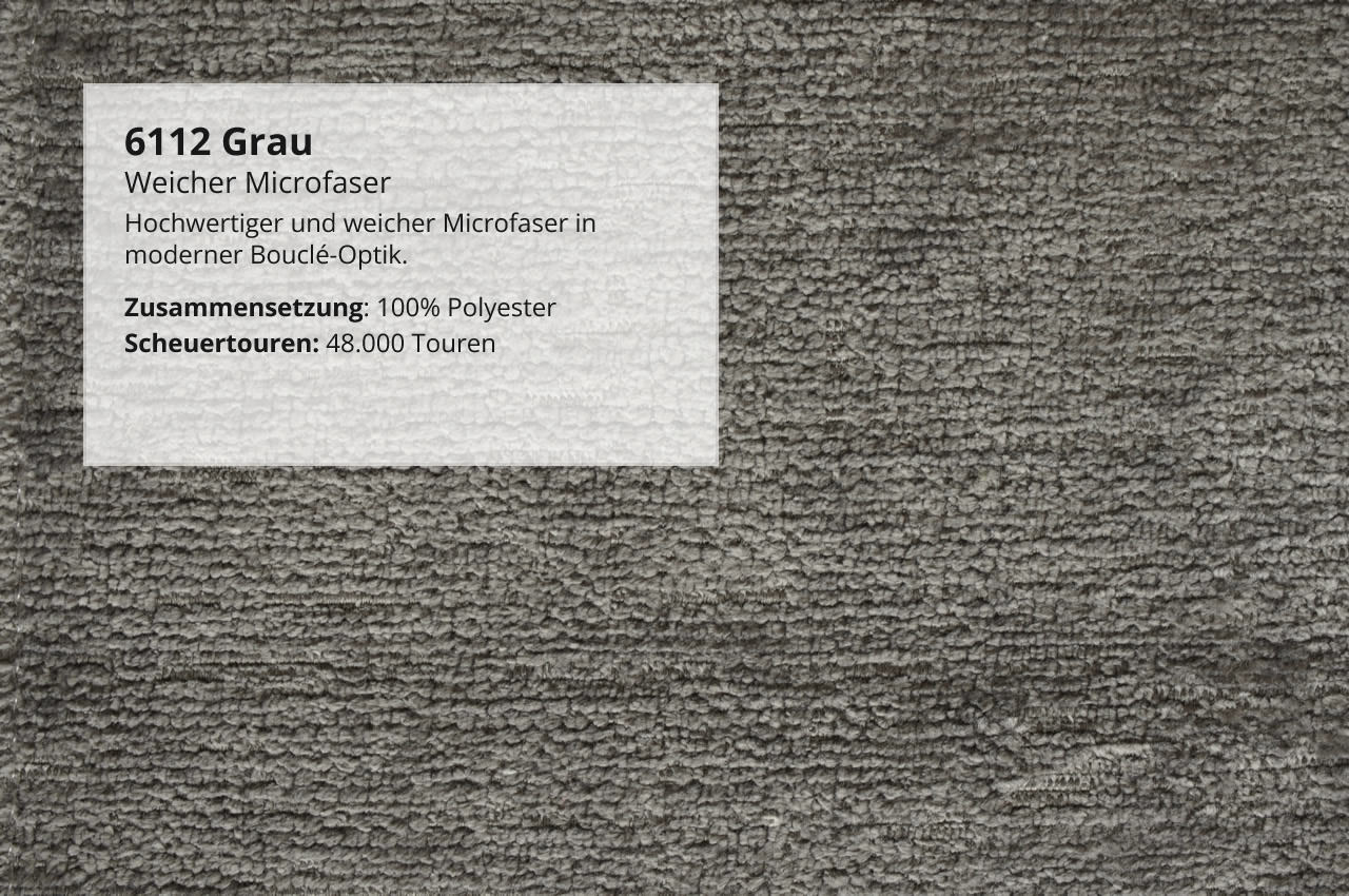 - Microfaser: Der Bezug hat eine weiche Oberfläche mit einem stilvollen Schimmer. Wählen Sie die Farbe 6112 Grau.