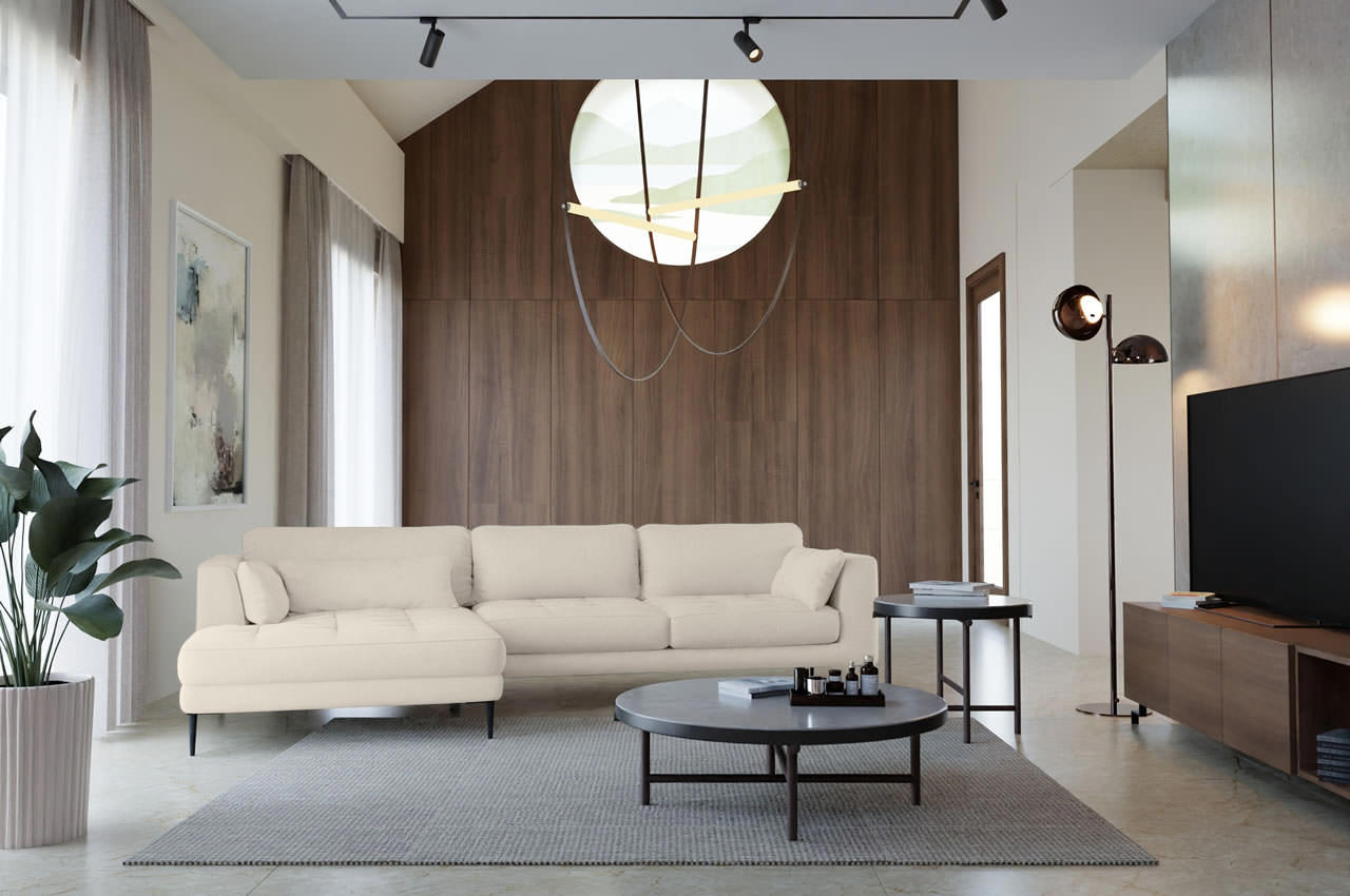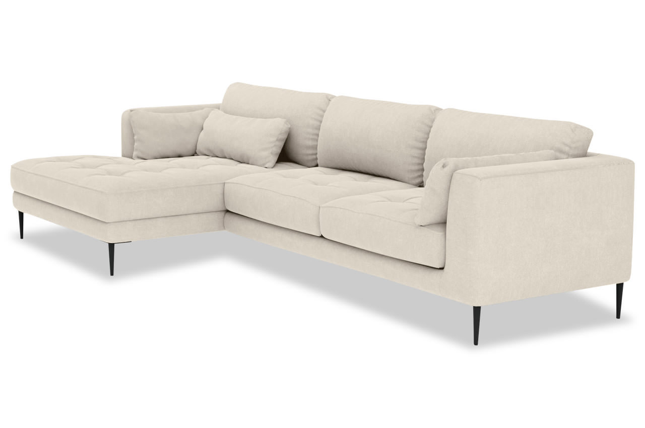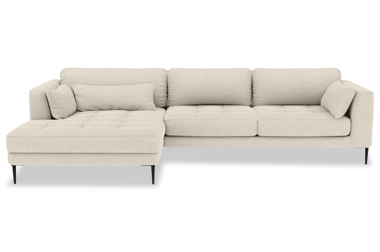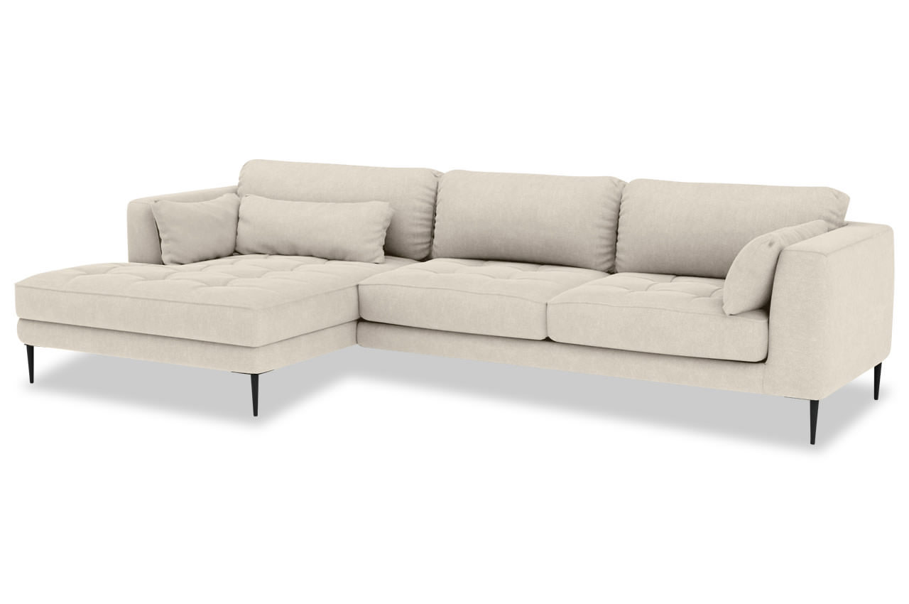 Moderne Eleganz - das Ecksofa Luzi von New Look Trendmanufaktur besitzt eine stilvolle Optik im modernen Design. Die klare und schlanke Form zusammen mit dezenten Metallfüße (wählbar in drei Farben) verleiht dem Sofa eine besondere Leichtigkeit. Diese Garnitur ist ein echtes Schmuckstück und besticht durch ihre moderne Eleganz. Die extra breite Recamiere auf der linken Seite ist der ideale Platz, um sich so richtig zu entspannen und die Seele baumeln zu lassen.