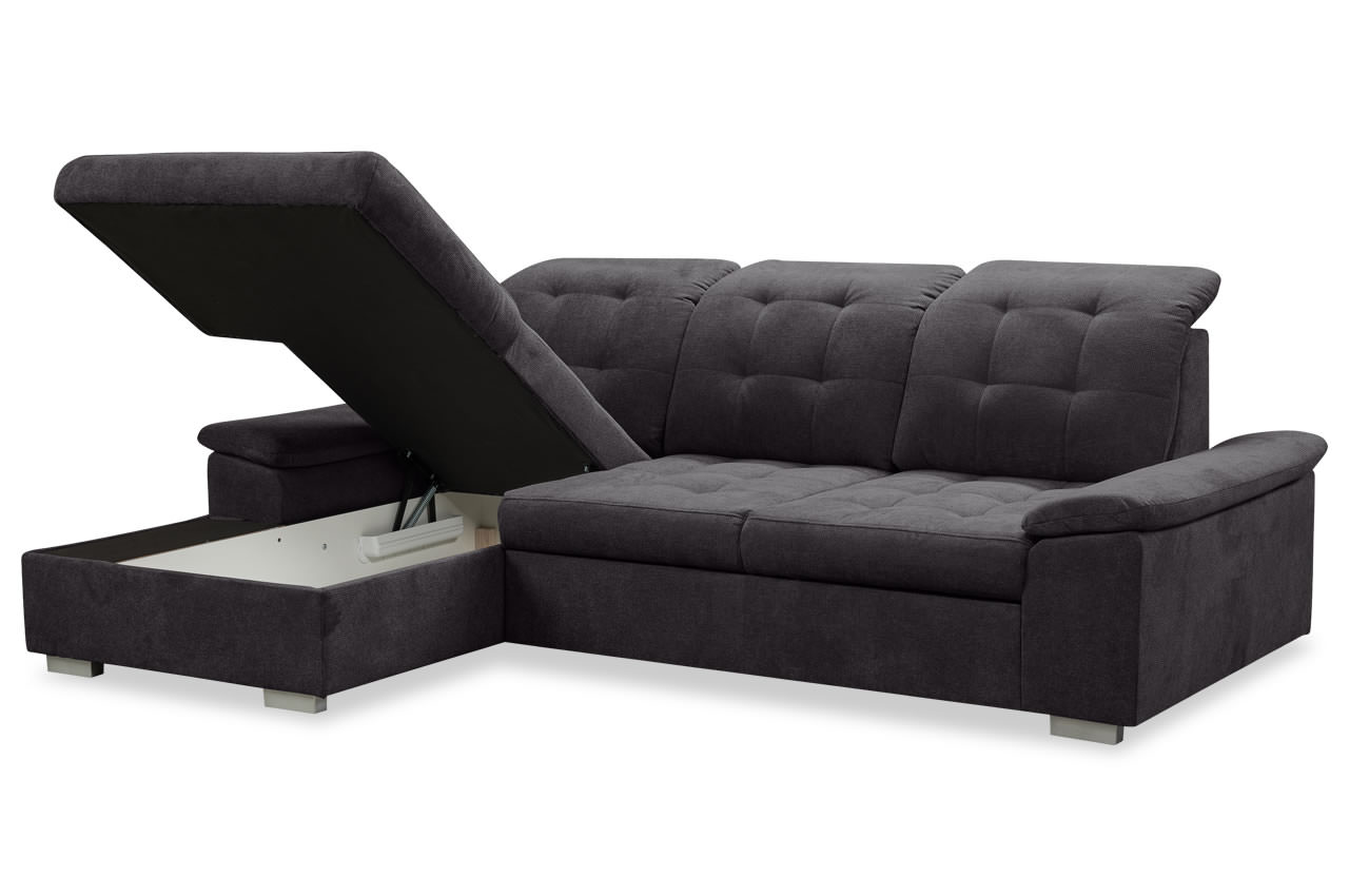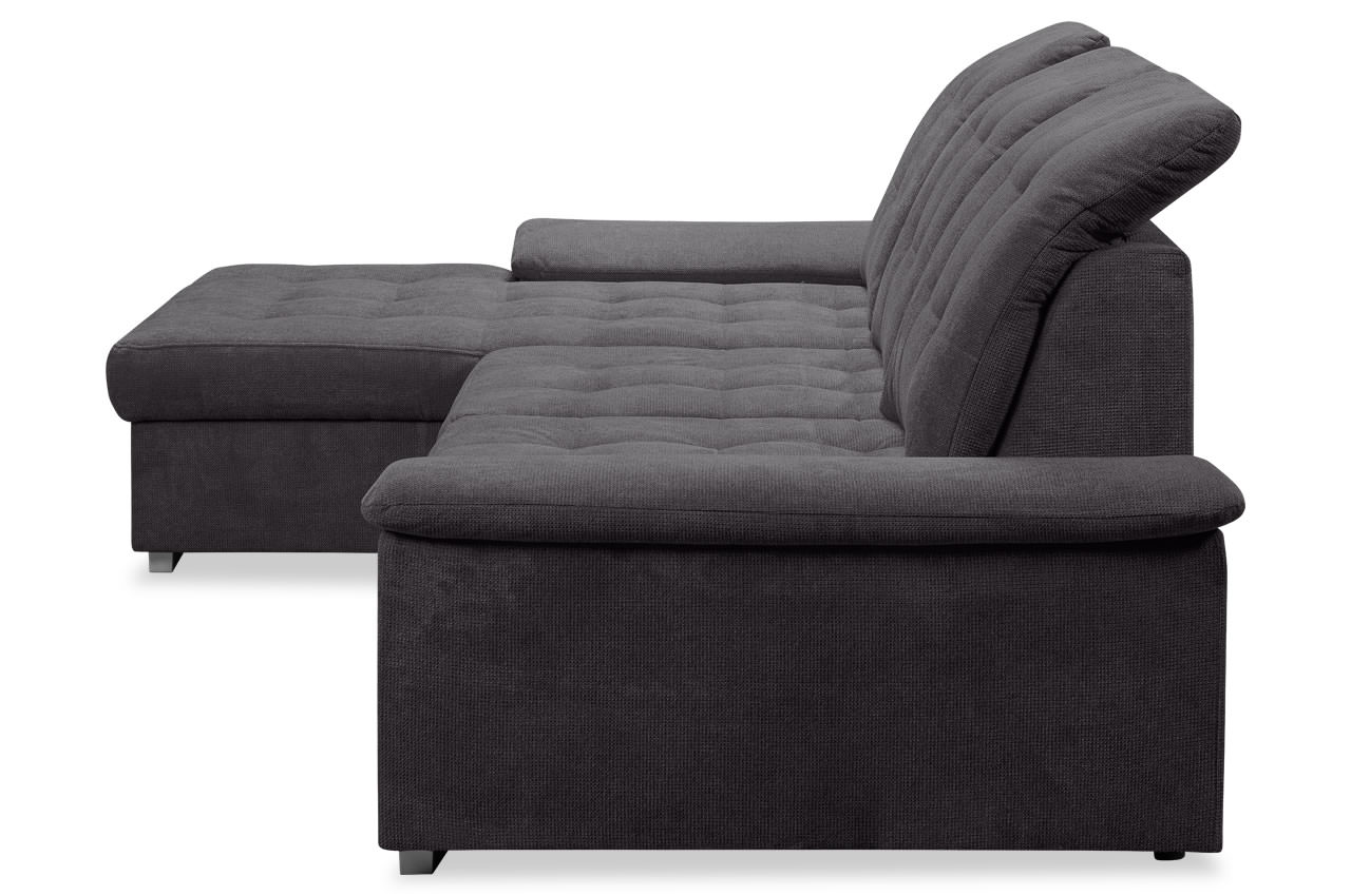 Empfangen Sie oft Besuch, der gern zur Übernachtung bleibt? Die praktische Bettfunktion ist im Handumdrehen aufgebaut und bietet Ihren Gästen die Grundlage für erholsame Nächte. Die große Liegefläche ist sehr bequem und auch am Abend beim Fernsehen eine super gemütliche Lösung. Hier können Sie sich schön einkuscheln und relaxen. Kissen und Decken verstauen Sie im geräumigen Bettkasten unter der linksseitigen Recamiere.