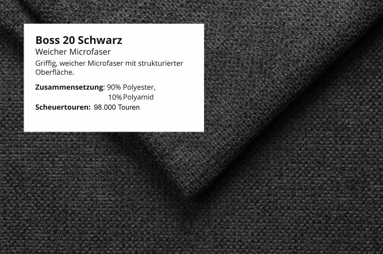 - Weicher Microfaser Boss: Der robuste Microfaser hat eine leicht weiche Oberfläche mit einer schönen Struktur. Wählen Sie aus den Farben 04 Taupe, 18 Grau und 20 Schwarz.