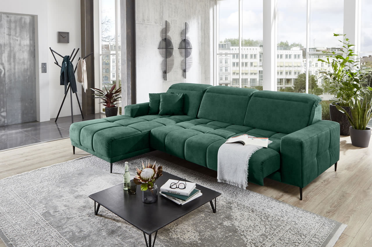Ecksofa Livorno links - wahlweise mit elektrischer Verstellung
