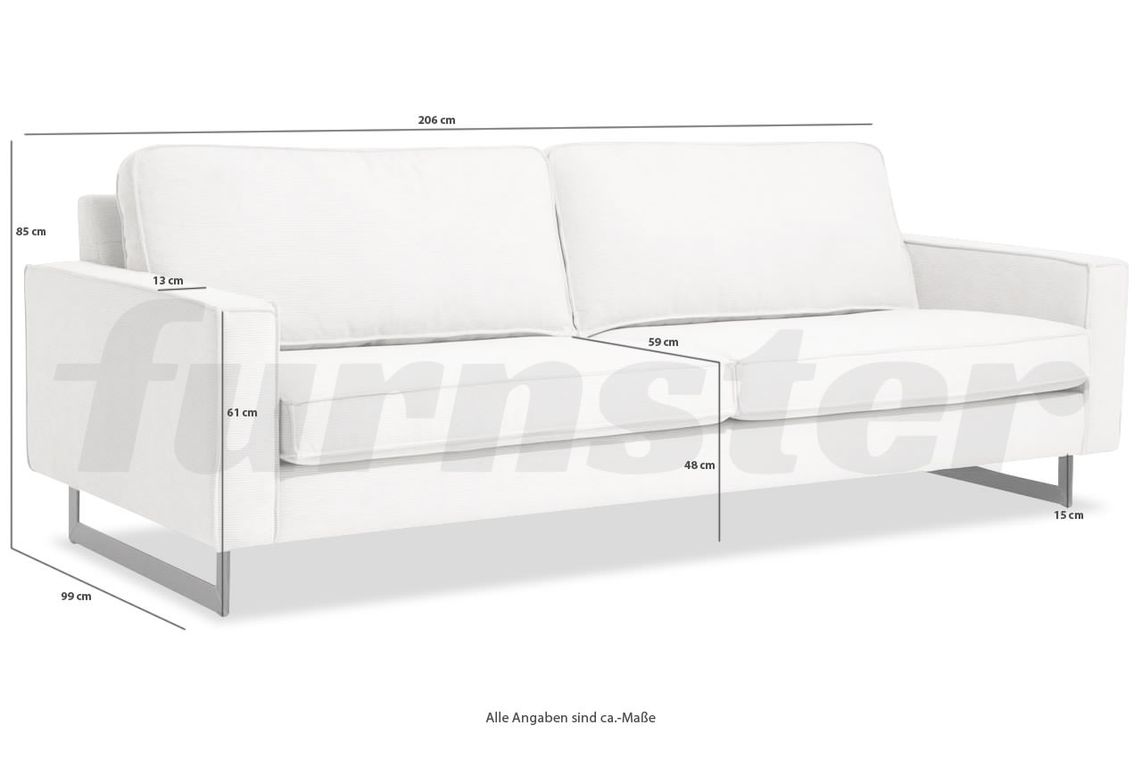- 3er Sofa: Das Sofa hat eine Gesamtbreite von 2,06 Meter