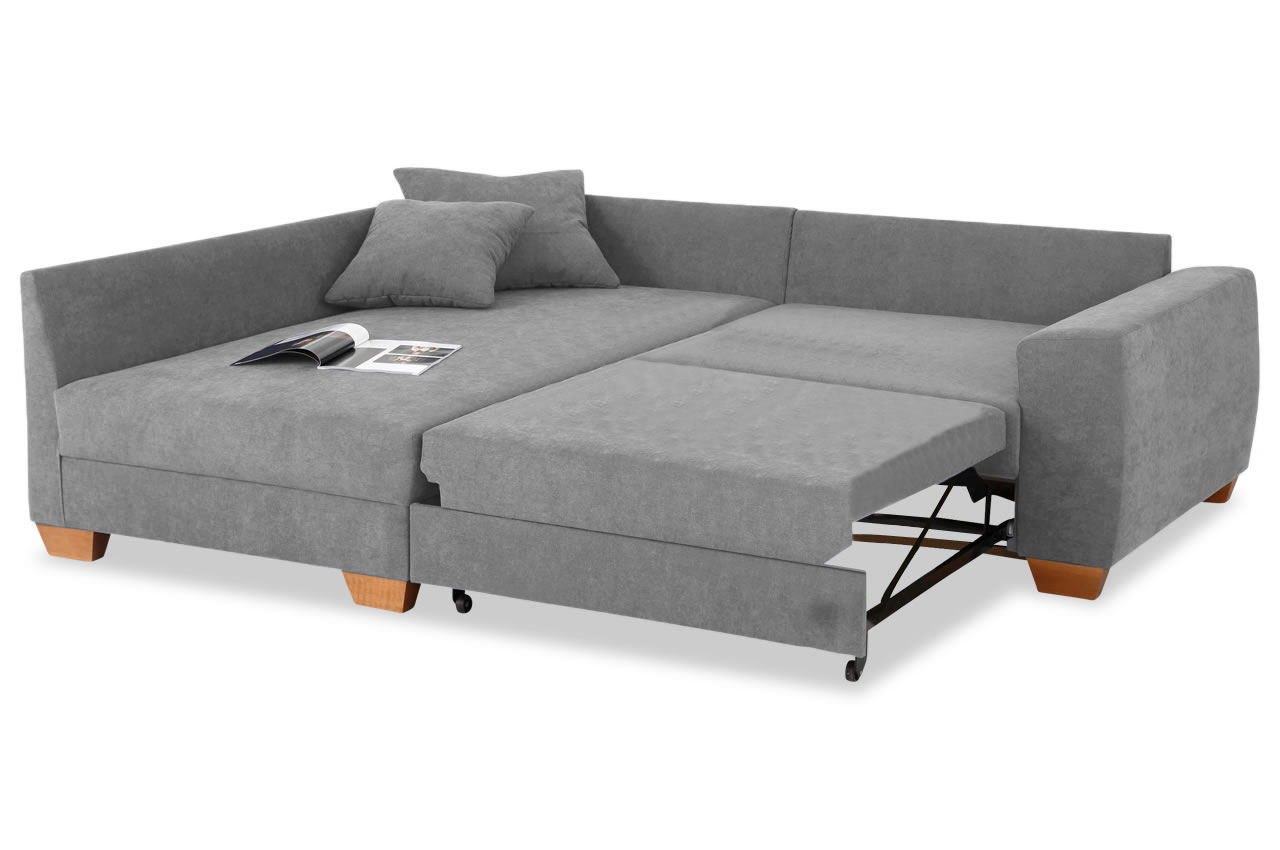 Ecksofa Nora NovaSpring mit Bettfunktion Leaf 08 Grau Mit Schlaffunktion