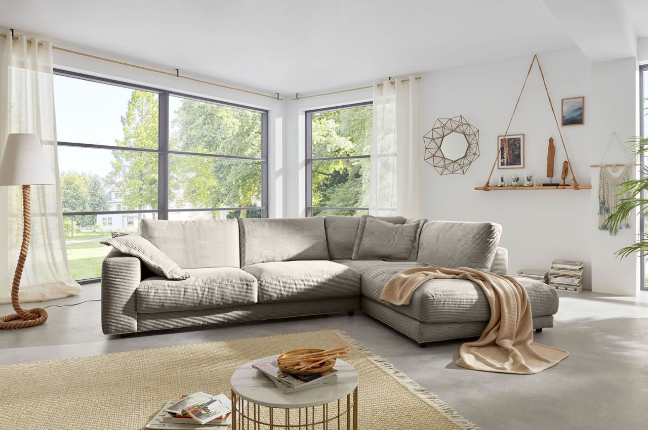 - Cord: Der Polsterstoff ist sehr hochwertig, robust und hat eine schöne Optik. Wählen Sie aus den Farben Dunkelgrau, Grau, Hellgrau, Nature, Snow und Taupe.