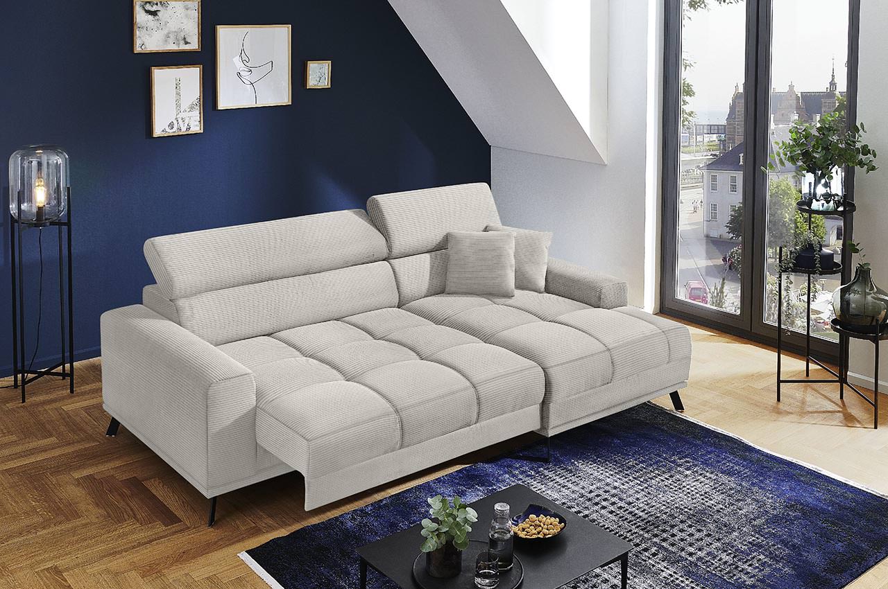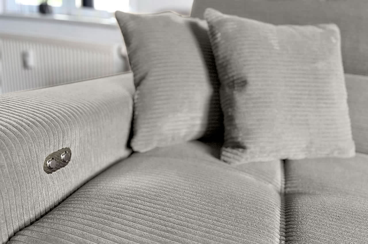 - Mit elektrischer Sitzverstellung: Die elektrisch verstellbare Sitzfläche ist ein echtes Highlight. Nehmen Sie Platz, drücken den Knopf und fahren die linksseitige Sitzfläche nach vorn aus, um noch mehr Platz zum Relaxen zu erzeugen. Die Liegefläche, die durch die vergrößerte Sitztiefe entsteht, eignet sich auch als Gästebett.
