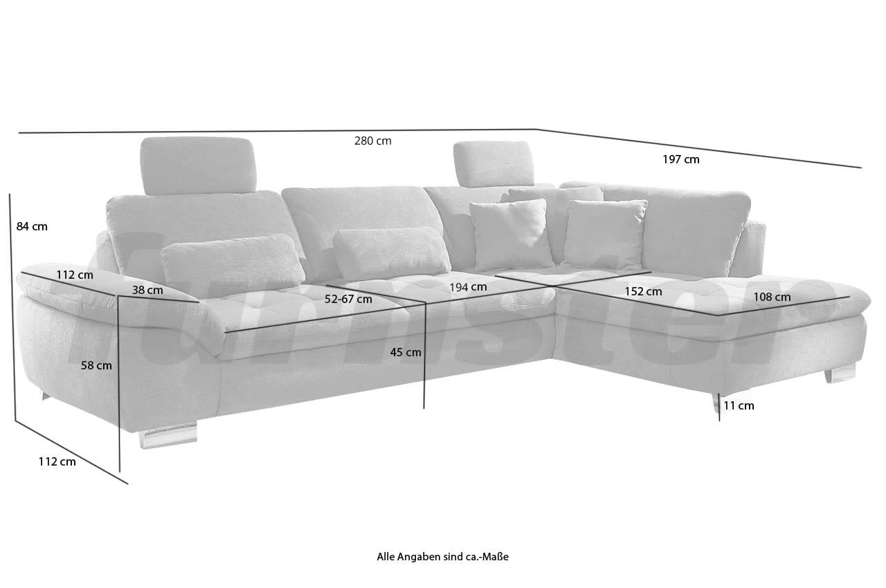 Ecksofa mit Schlaffunktion, Bettkasten, Kopfteil und Sitztiefenverstellung