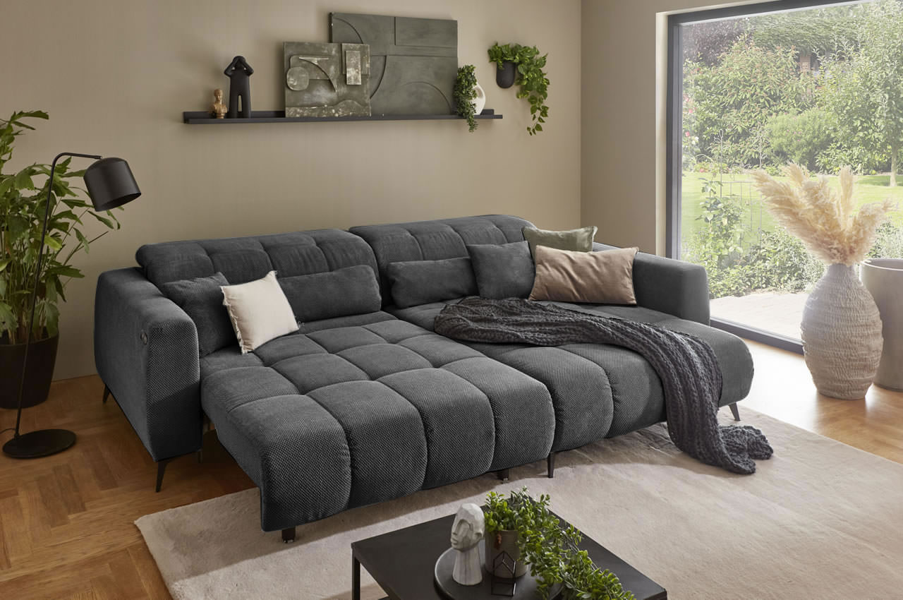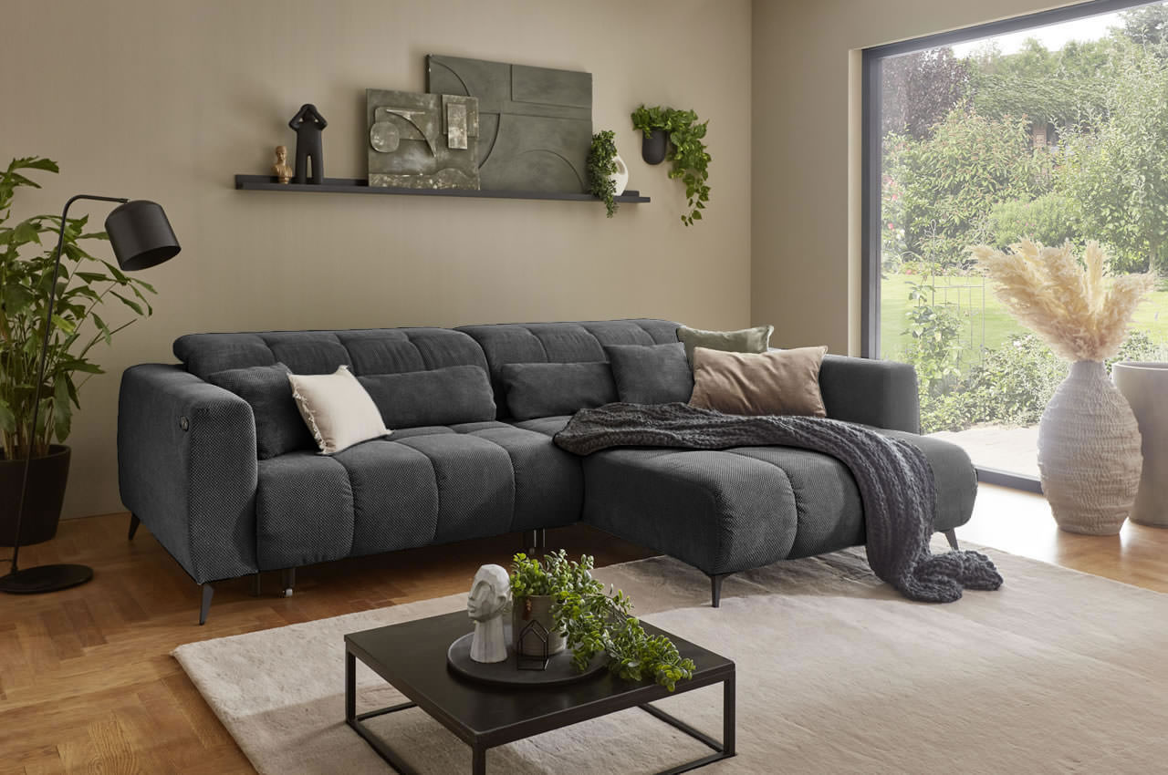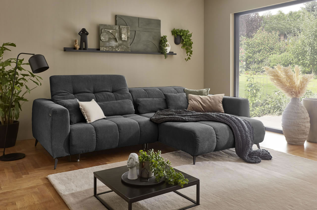 Das Ecksofa Luxor verbindet modernes Design mit großartigen Funktionen, die für einen außergewöhnlichen Komfort sorgen. Mit seiner stilvollen Optik und komfortablen Verstellmöglichkeiten wird es zum Mittelpunkt in jedem Wohnzimmer. Perfekt, wenn Sie ein Sofa suchen, das zugleich gemütlich als auch funktional ist.