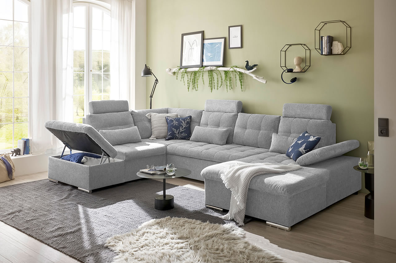 - Mit Schlaffunktion: Mit wenigen Handgriffen verwandeln Sie die Wohnlandschaft in eine große Liegefläche - ideal zum Relaxen vor dem Fernseher oder als komfortables Gästebett für Übernachtungen.