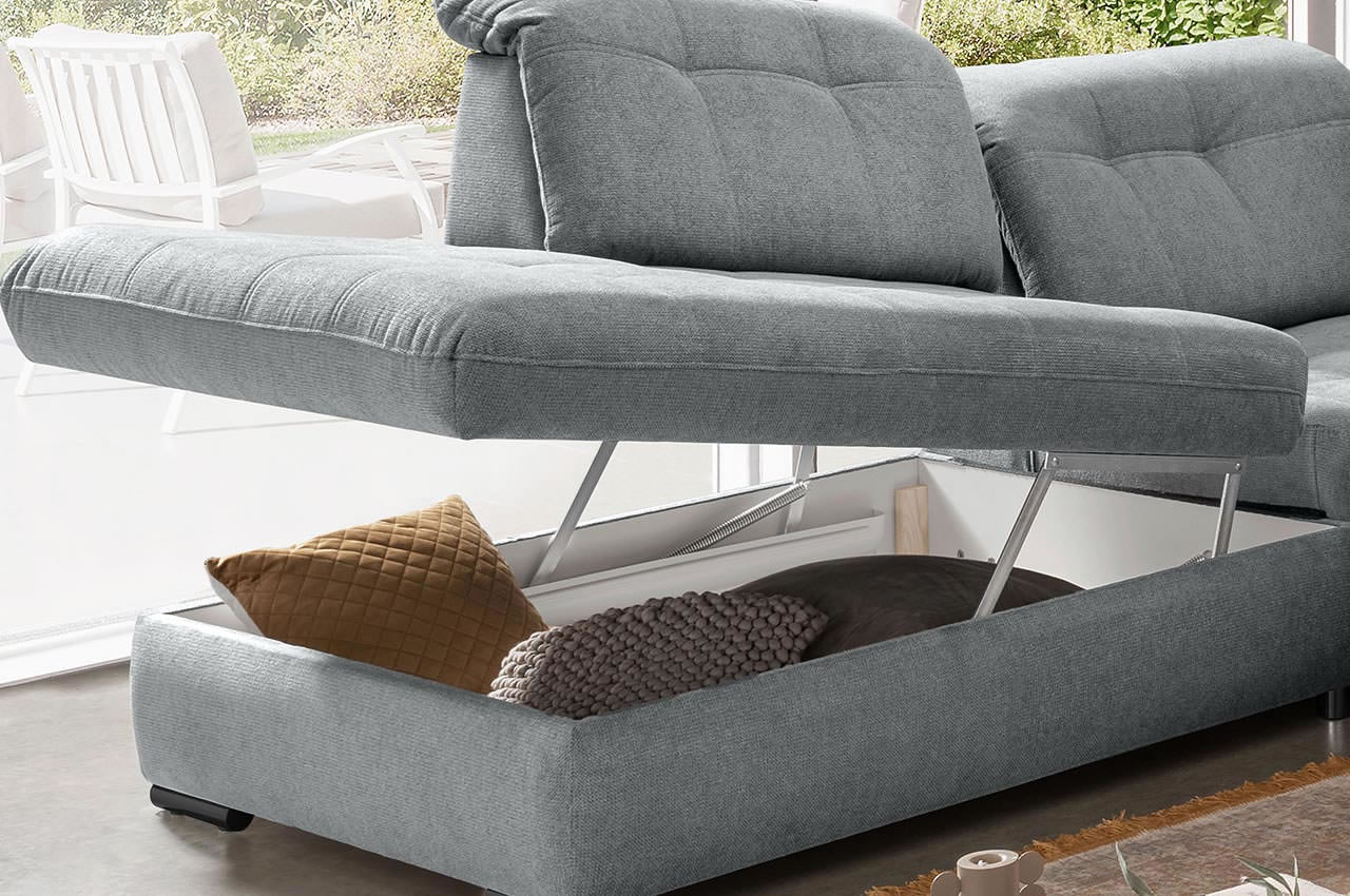 - Breite Recamiere auf der rechten Seite: Ideal zum Liegen, Entspannen und Füße hochlegen. Ob mit einem Buch oder bei einem Nickerchen - hier können Sie sich gemütlich lang machen und entspannt relaxen.