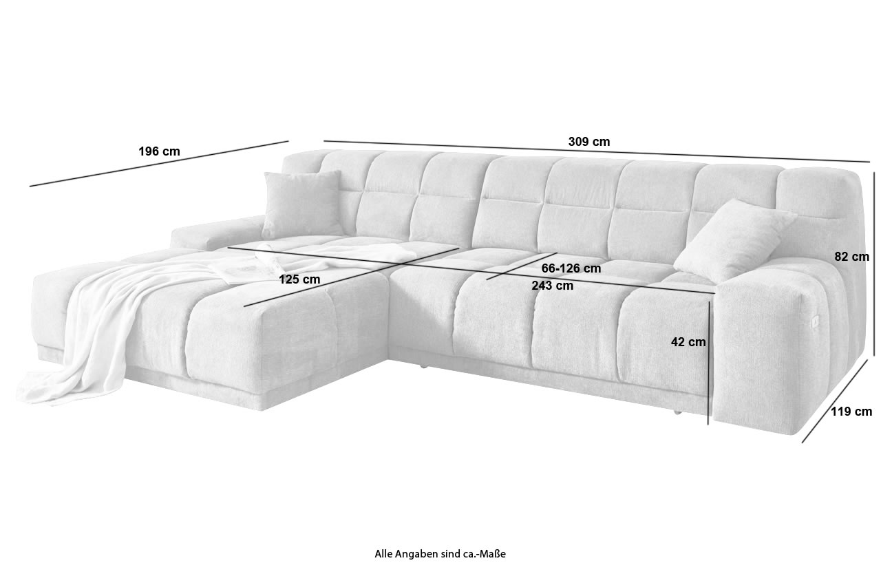 Ecksofa Landen links - mit elektrischer XXL-Sitztiefenverstellung