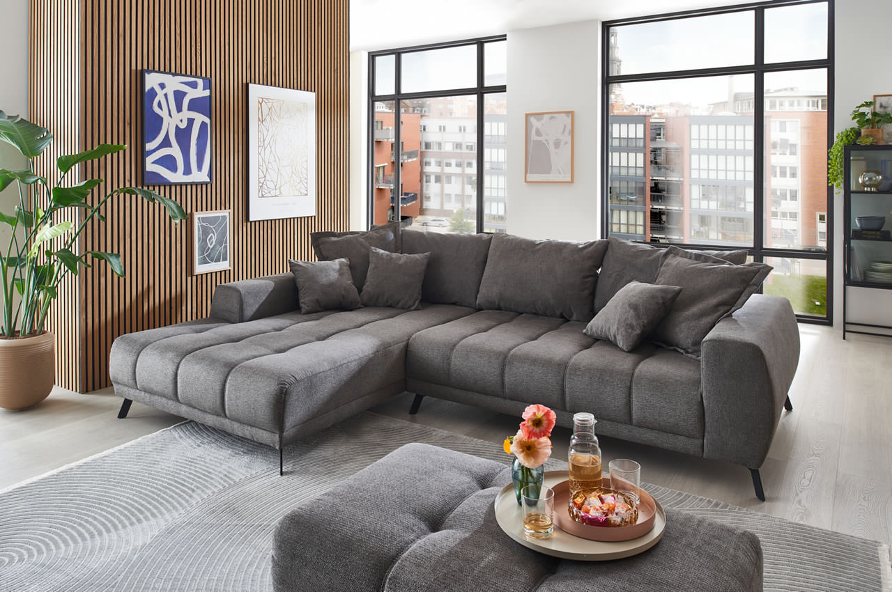 - Komfortable Recamiere: Die linksseitige Recamiere lädt zum Relaxen und gemütlichen Abenden ein – perfekt, um die Beine hochzulegen und den Tag entspannt ausklingen zu lassen.