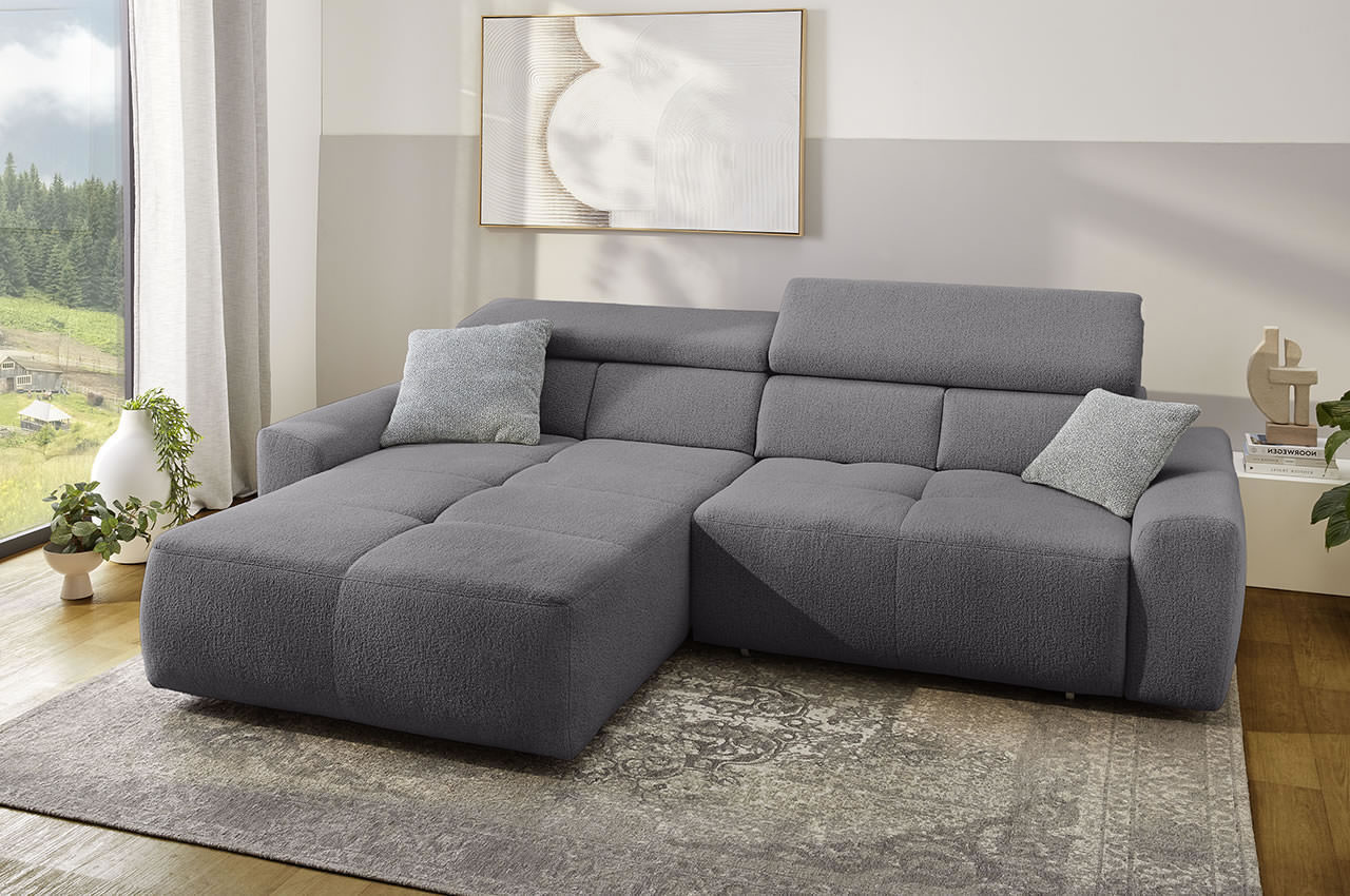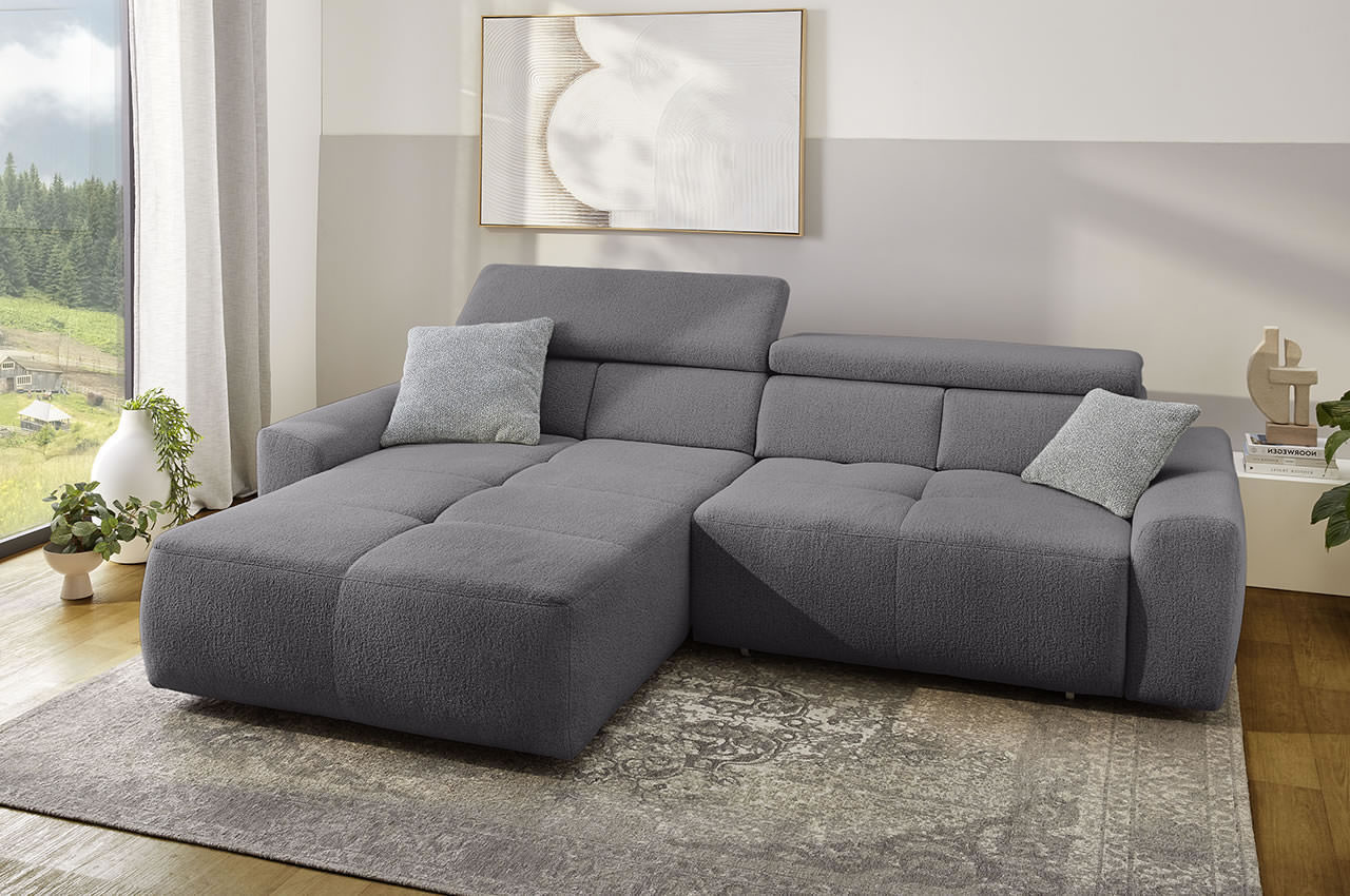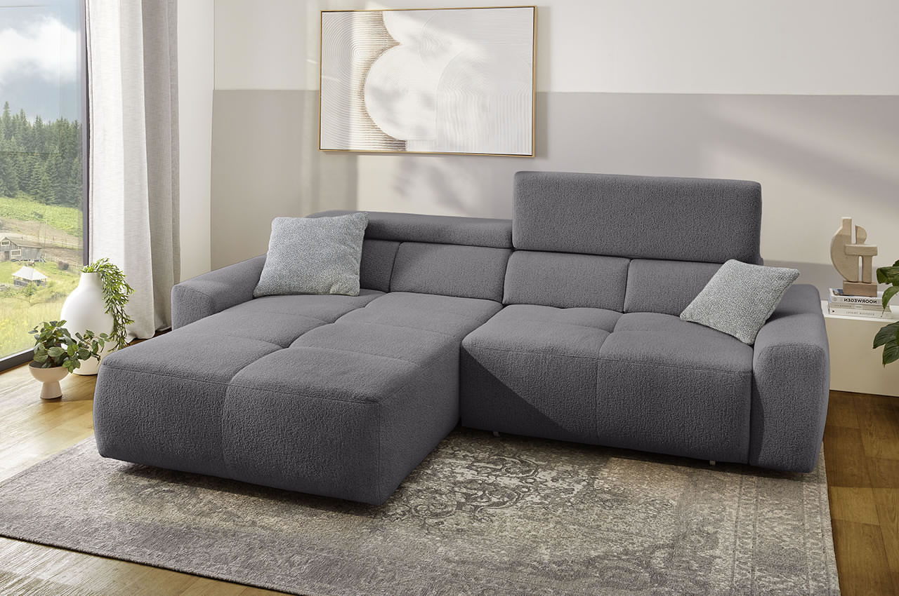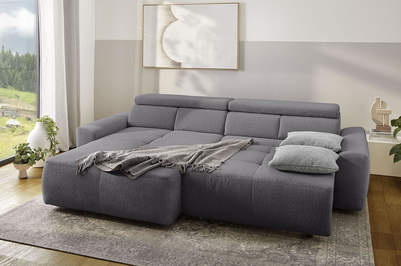 Ecksofa Uno links - mit elektrischer XXL-Sitztiefenverstellung