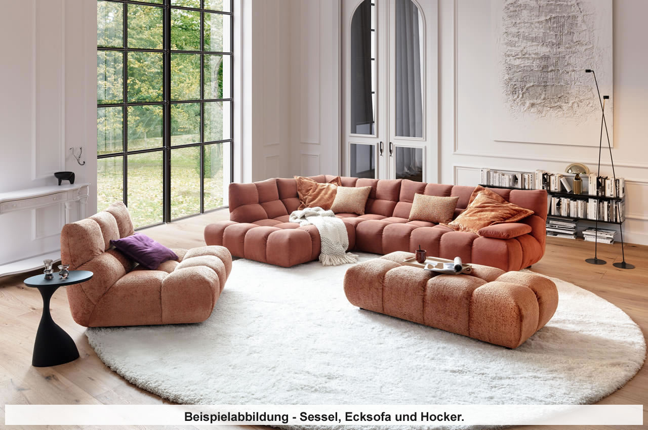 Das Ecksofa Graceland von Candy kombiniert eine üppige Polsterung, moderne Optik und einen einladenden Lounge-Charakter zu einem echten Wohlfühlsofa. Mit seiner großzügigen Größe und der markanten Steppung bringt es Style und Gemütlichkeit in jedes Wohnzimmer. Ob zum Entspannen, Lesen oder für gemeinsame Stunden mit Freunden und Familie – Graceland bietet reichlich Platz und erstklassigen Komfort.