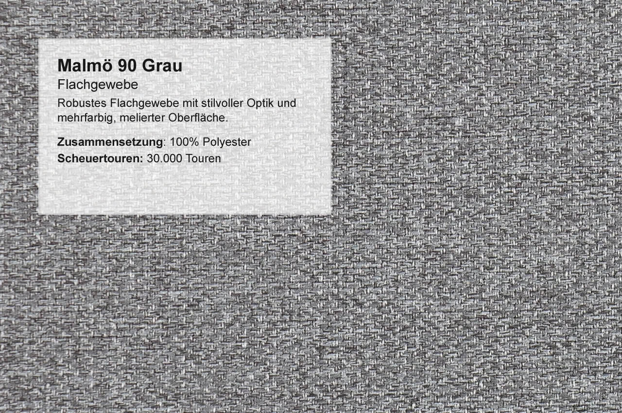 - Flachgewebe Malmö: Robust, modern und sehr pflegeleicht. Das mehrfarbig melierte Gewebe sorgt für eine stilvolle Optik und lässt das Boxspringbett Lugano A harmonisch in verschiedenste Einrichtungsstile einfügen.
