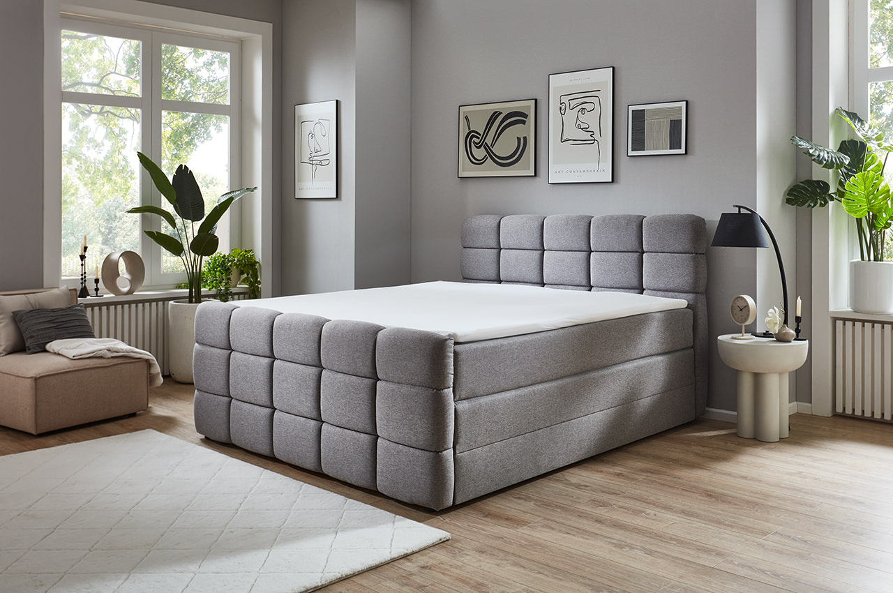 Das Boxspringbett Lugano A vereint elegantes Design mit hohem Schlafkomfort. Die tief gesteppte Polsterung im Kopf- und Fußteil verleiht dem Bett eine opulente, einladende Optik. Dank seines komfortablen Aufbaus bietet Lugano A nicht nur ein stilvolles Erscheinungsbild, sondern auch optimale Voraussetzungen für erholsame Nächte.