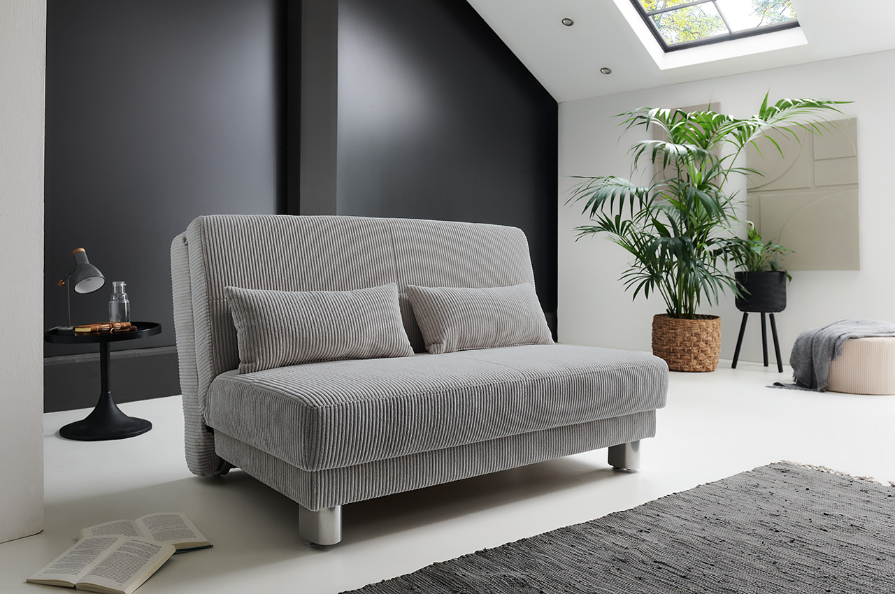 Das Schlafsofa Gina verbindet moderne Optik mit einer komfortablen Schlaffunktion und ist dadurch eine hervorragende Lösung für unterschiedlichste Wohnsituationen. Dank der Auswahl an mehreren Breiten – von kompakt bis großzügig – eignet es sich ideal für Ferienwohnungen, Kinder- und Jugendzimmer oder kleine Wohnzimmer, in denen ein platzsparendes Schlafsofa gefragt ist.
