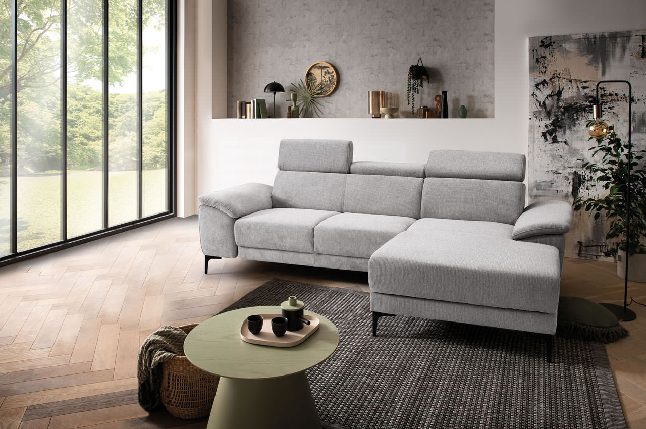 Das Ecksofa Cosby überzeugt mit einer luftigen, leichten Bauweise und einer kompakten Größe, die es sowohl für kleine als auch für größere Wohnräume geeignet macht. Durch sein modernes Design fügt sich Cosby harmonisch in unterschiedliche Wohnkonzepte ein. Optional wählbare Relaxfunktionen verwandeln das Sofa zudem in eine echte Komfort-Relaxzone für entspannte Stunden im Wohnzimmer.