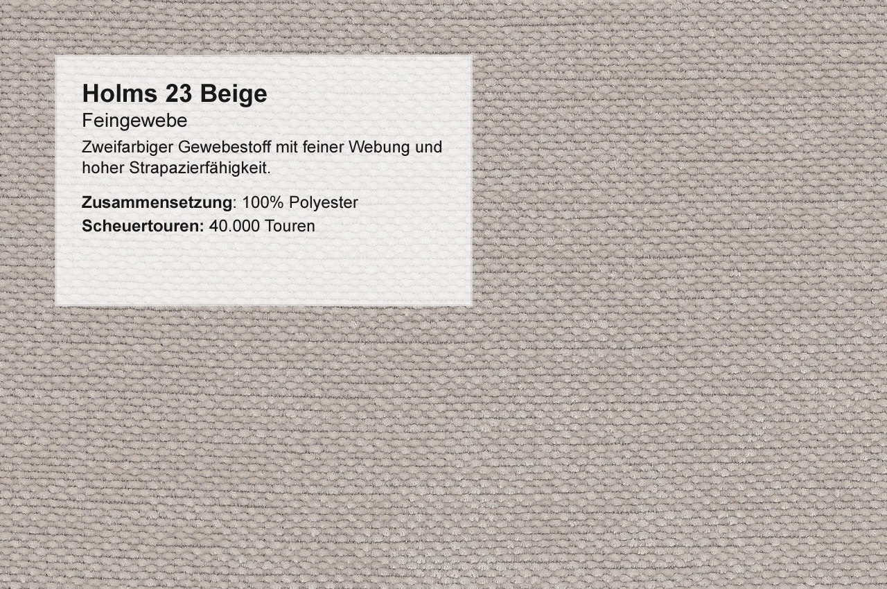 - Feingewebe Holms: Zweifarbig gewebter Stoff mit feiner Struktur und hoher Strapazierfähigkeit – modern, langlebig und angenehm in der Haptik.