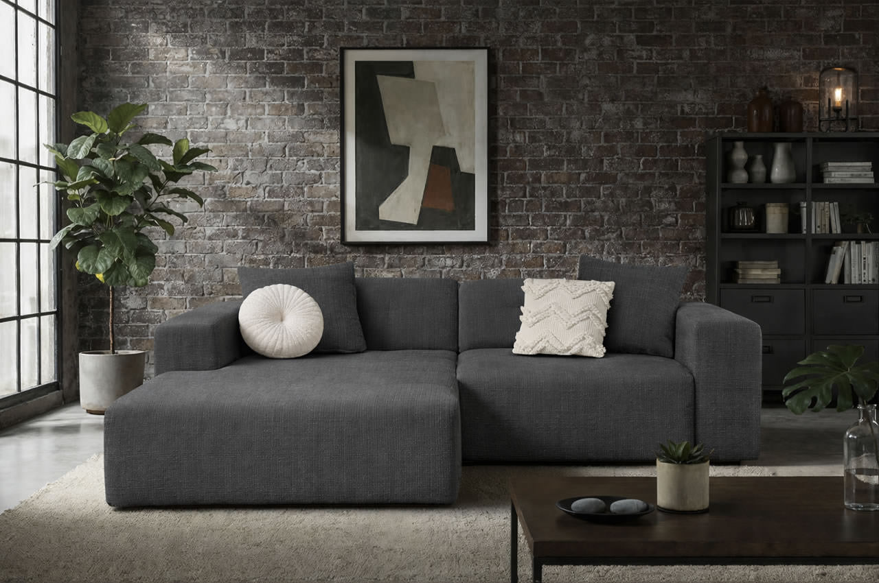 - Longchair linksseitig: Der großzügige Longchair bietet viel Platz zum Liegen, Kuscheln oder Relaxen und unterstreicht den wohnlichen Lounge-Charakter des Sofas.