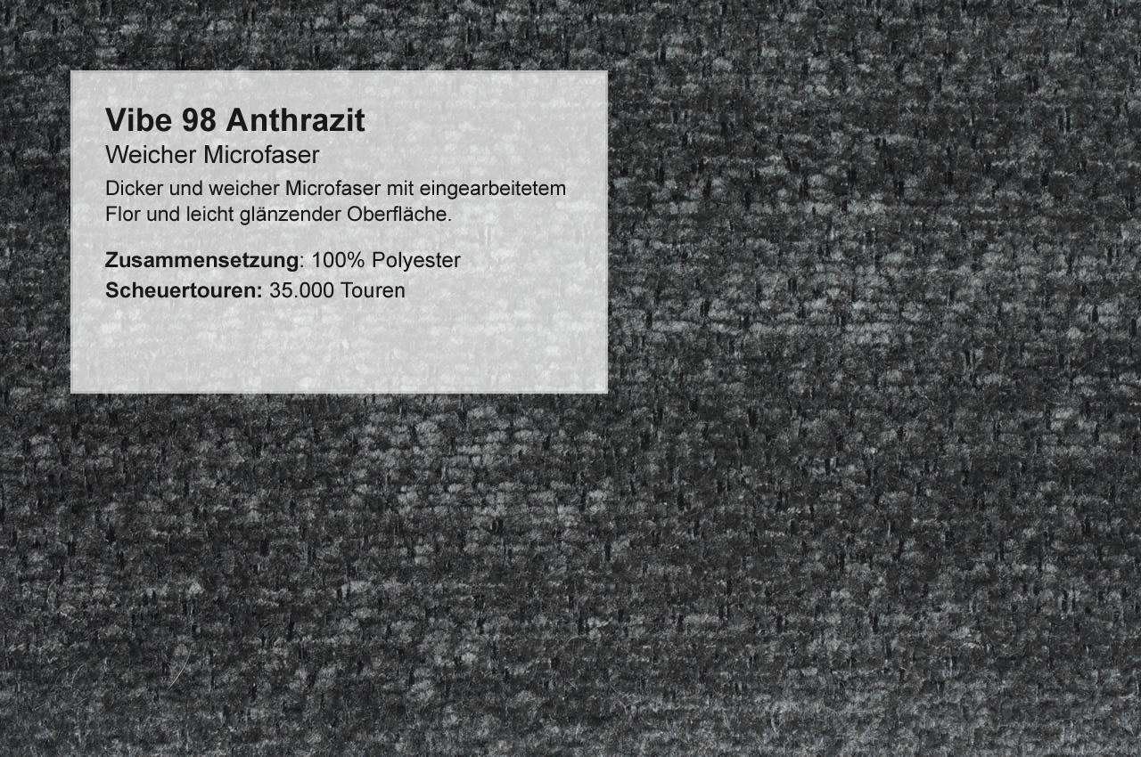 - Microfaser Vibe: Dicker, weicher Microfaser mit eingearbeitetem Flor und leicht glänzender Oberfläche, der dem Sofa eine besonders elegante Note verleiht.
