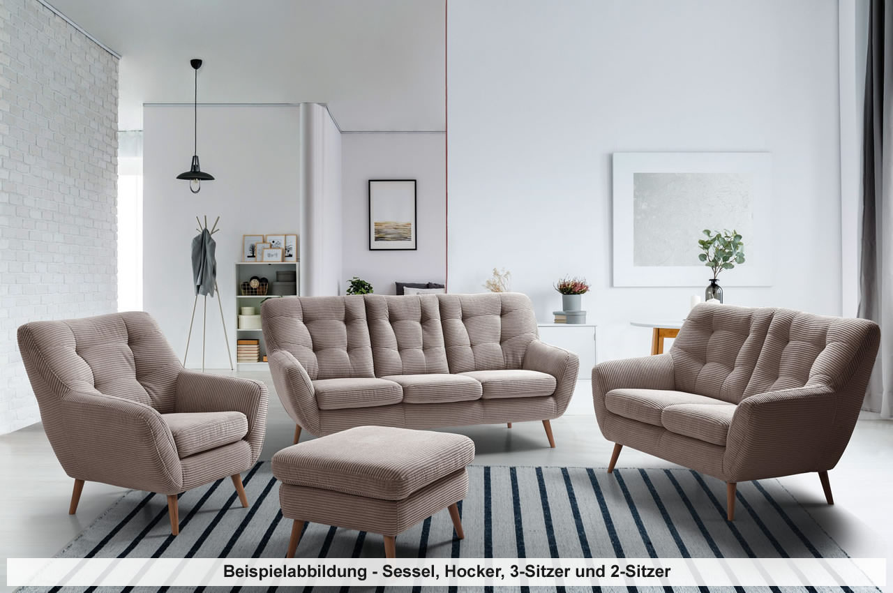 - Cord Stoff Poso: Der stilvolle Cord harmoniert hervorragend mit dem Sofadesign und bietet ein kuschelweiches Sitzgefühl.