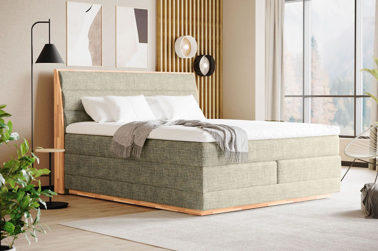 Das Boxspringbett Palma I ist eine moderne Schlaflösung für Paare, die Wert auf Komfort und eine zeitlos elegante Optik legen. Erhältlich in drei Bettgrößen, passt sich das Modell flexibel unterschiedlichen Raumsituationen an. Das Kopfteil ist harmonisch mit Massivholz umrandet und auch die Unterboxen werden am unteren Abschluss durch eine feine Holzleistenverzierung optisch aufgewertet.