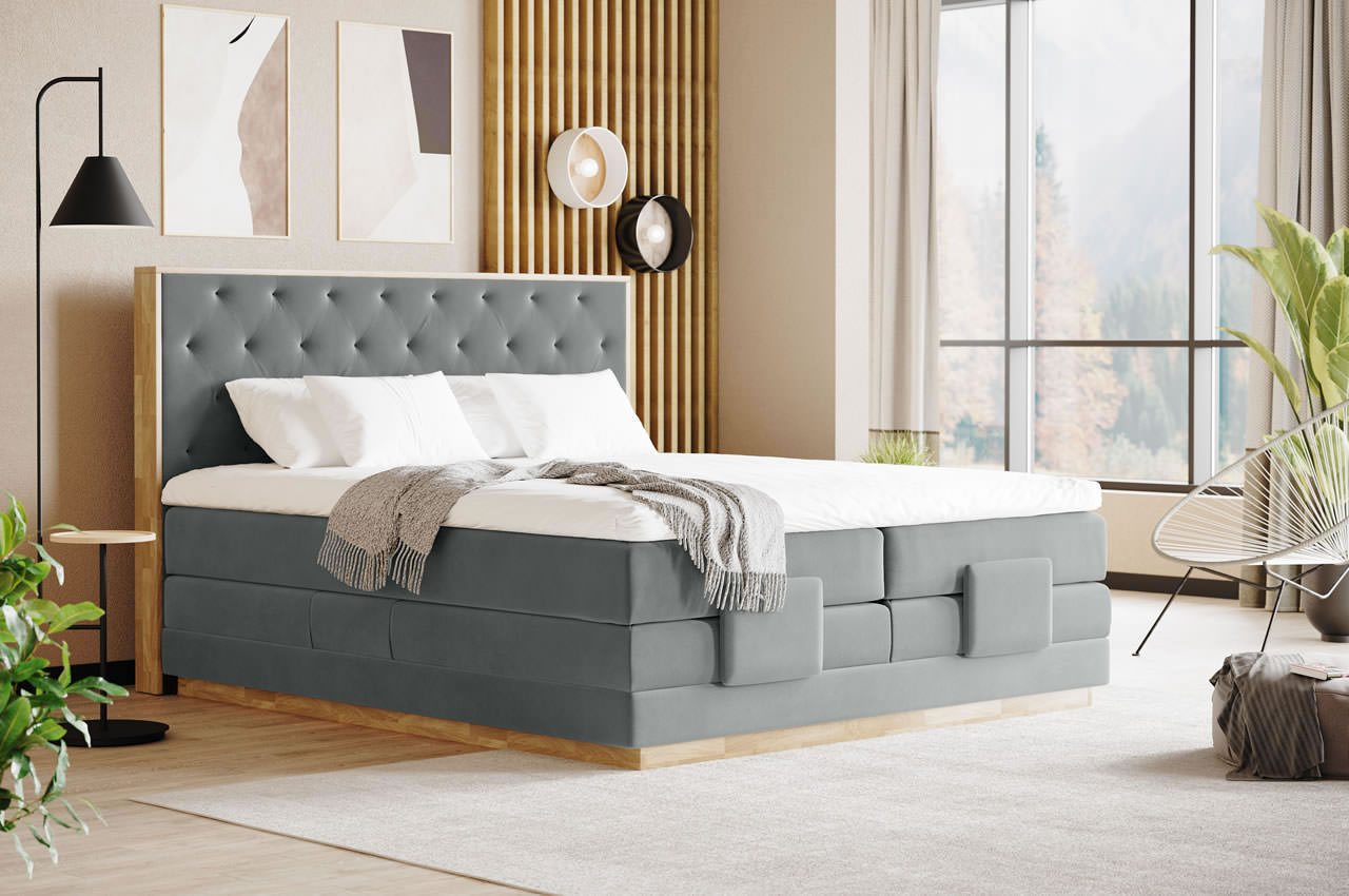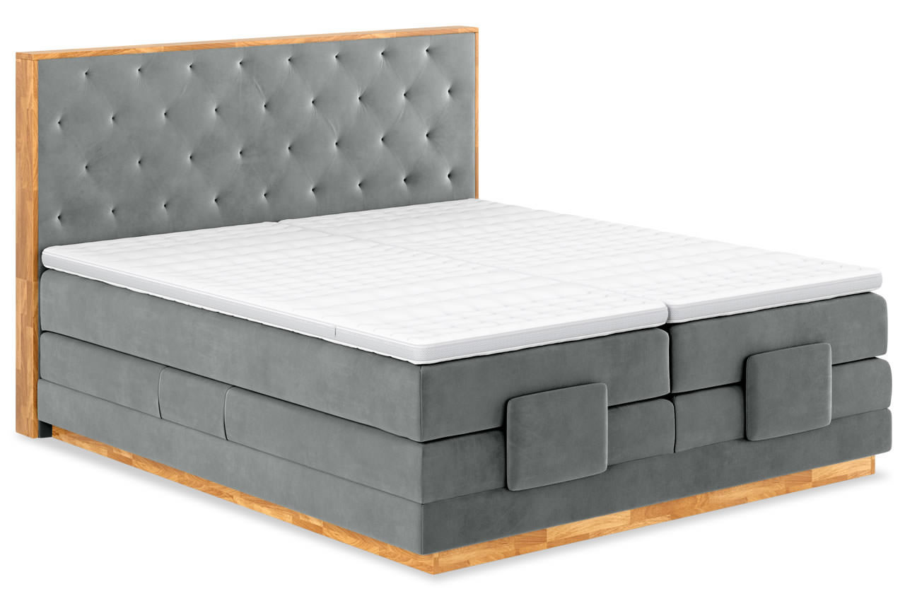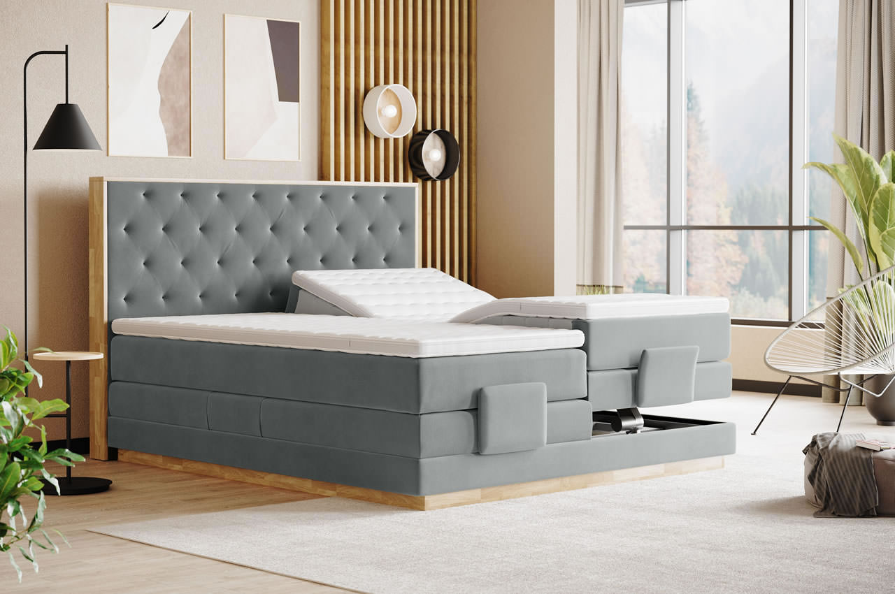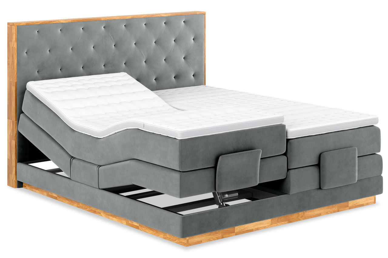 - Optional mit motorischer Kopf- und Fußteilverstellung: Für den besonderen Komfort ist das Bett auch mit einer motorischen Verstellung von Kopf- und Fußteil erhältlich. Beide Bereiche lassen sich unabhängig voneinander einstellen. In dieser Ausführung sorgen integrierte Stopper am Fußteil dafür, dass die Matratzen beim Verstellen sicher an ihrem Platz bleiben.