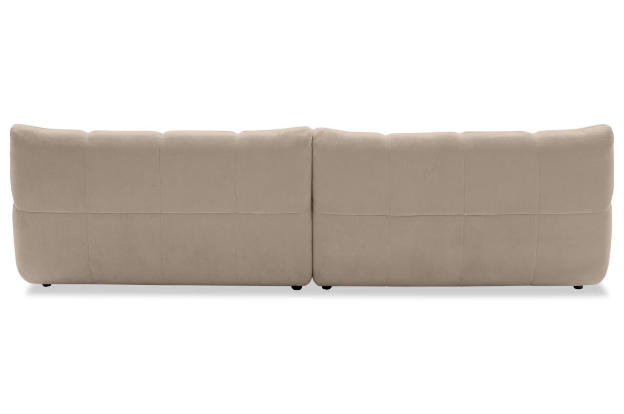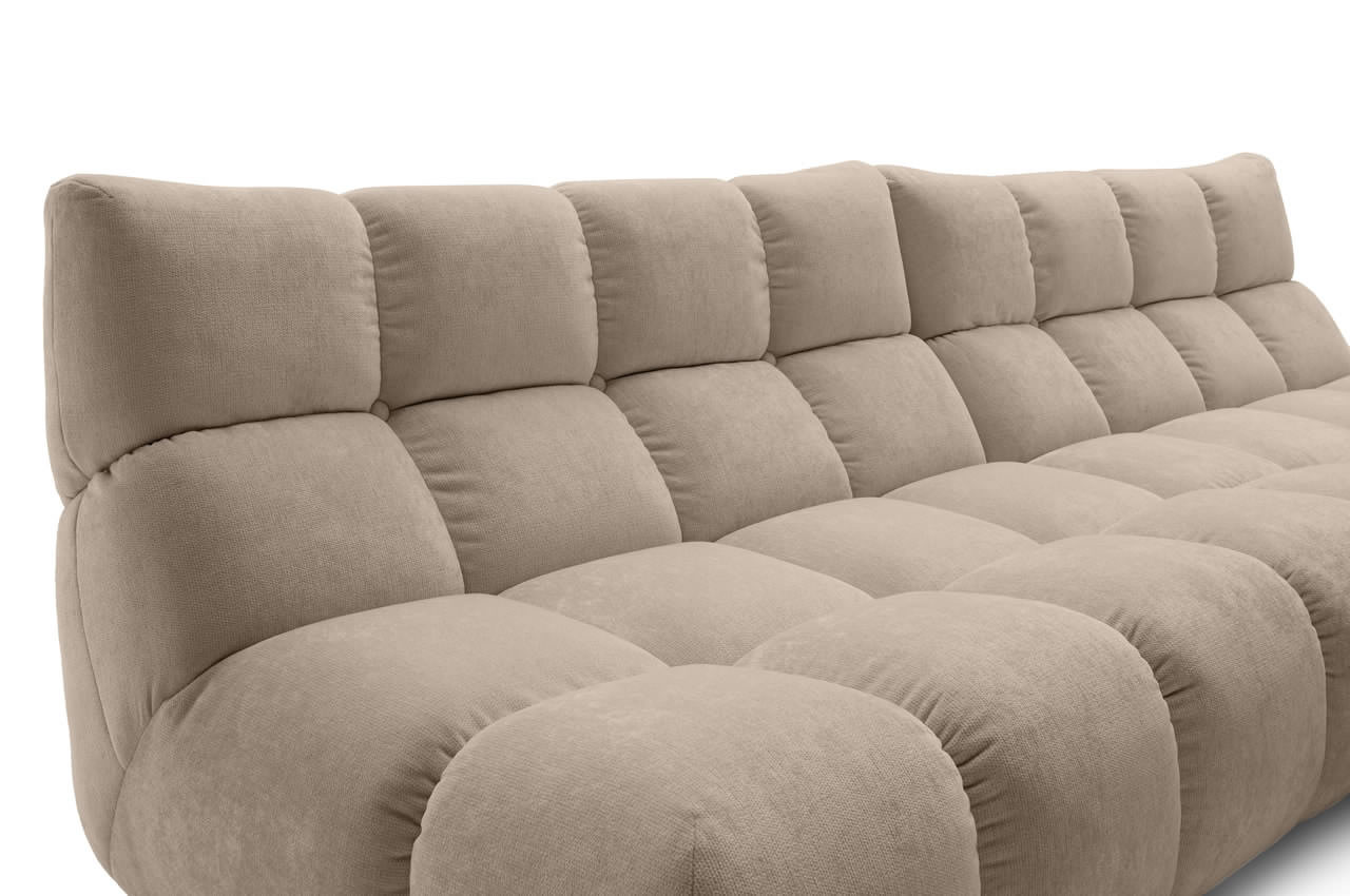 - Bodennahe Bauweise: Die niedrige Sitzhöhe unterstreicht den modernen Lounge-Stil und lässt das Sofa lässig und stilvoll zugleich wirken.