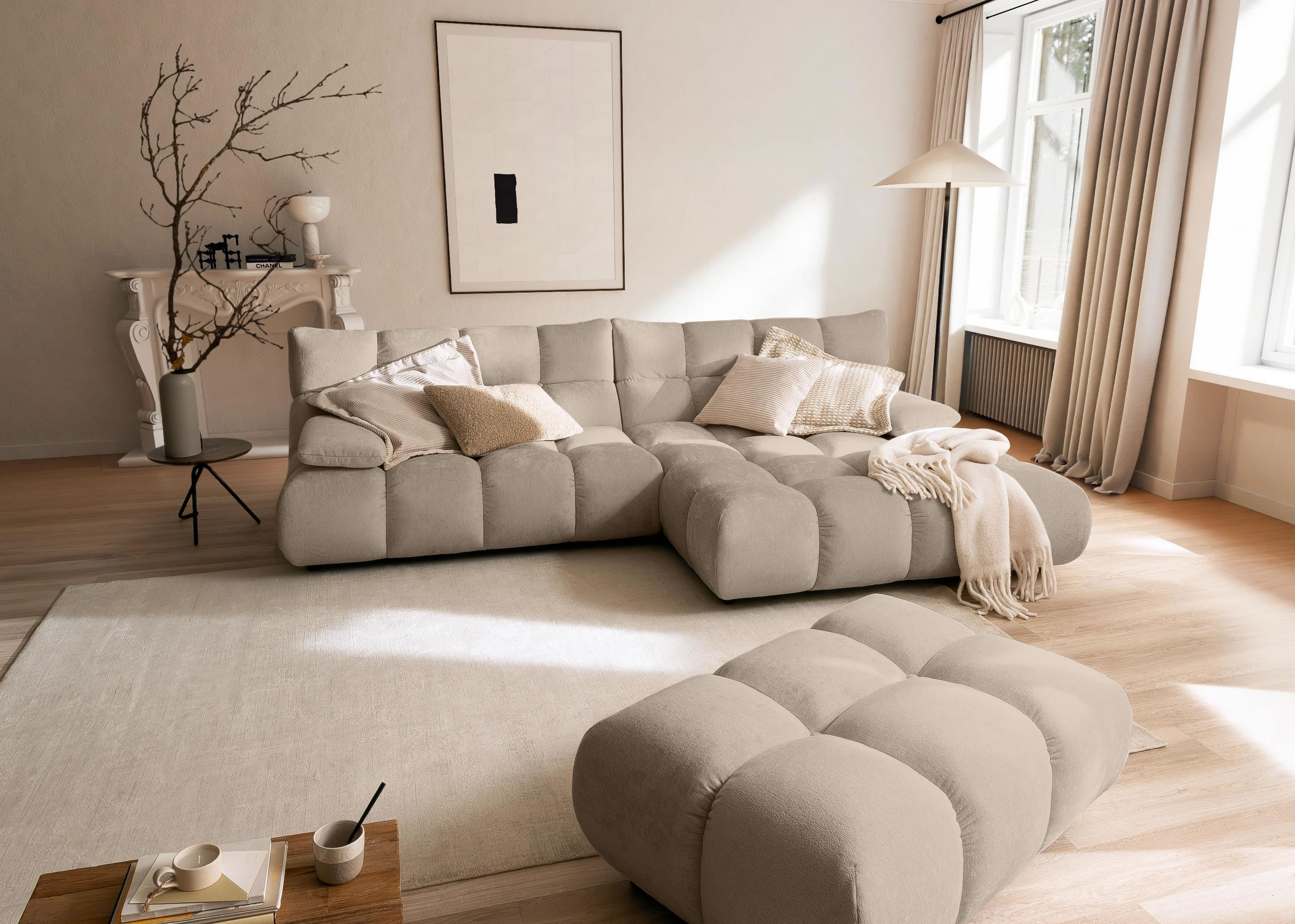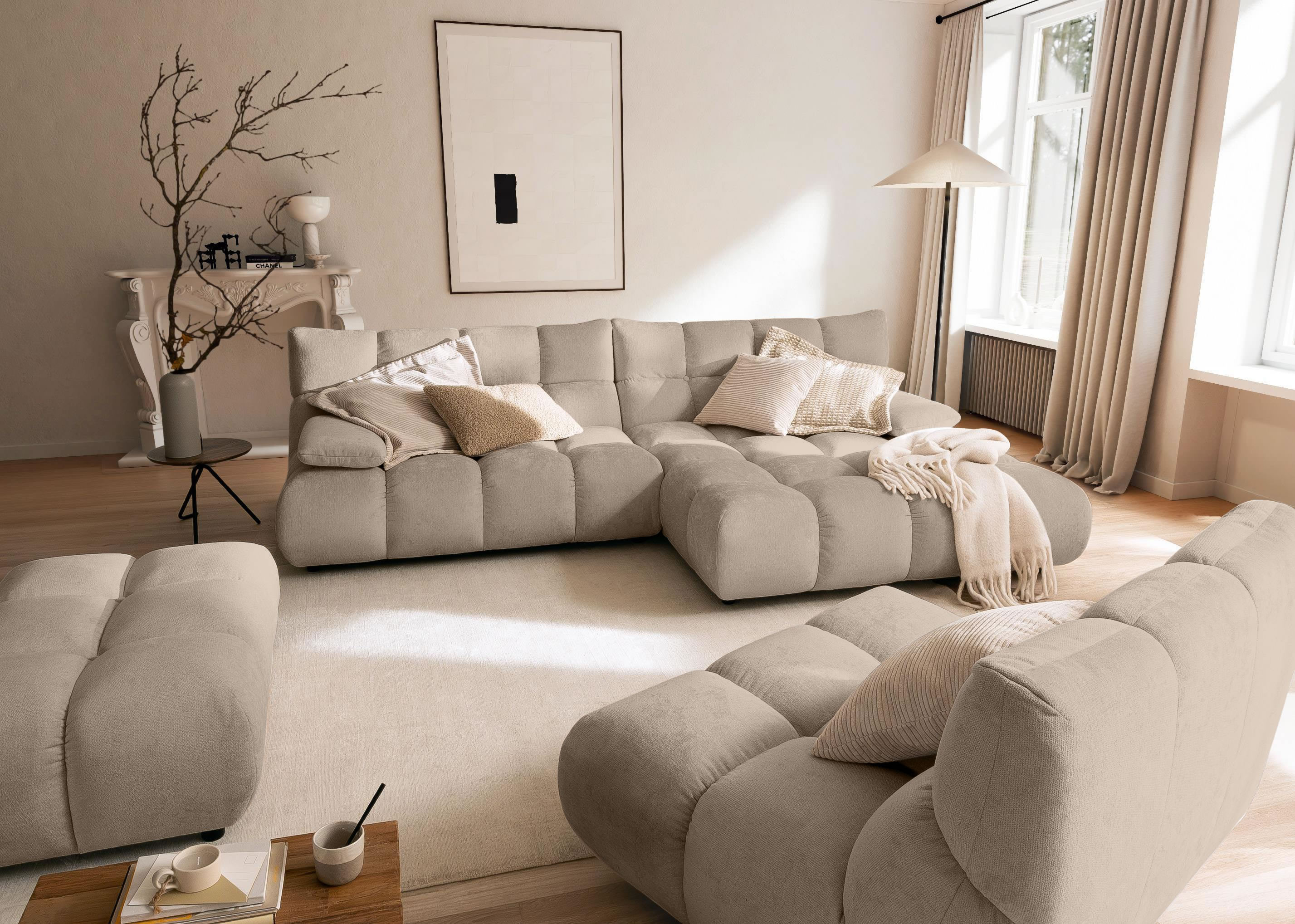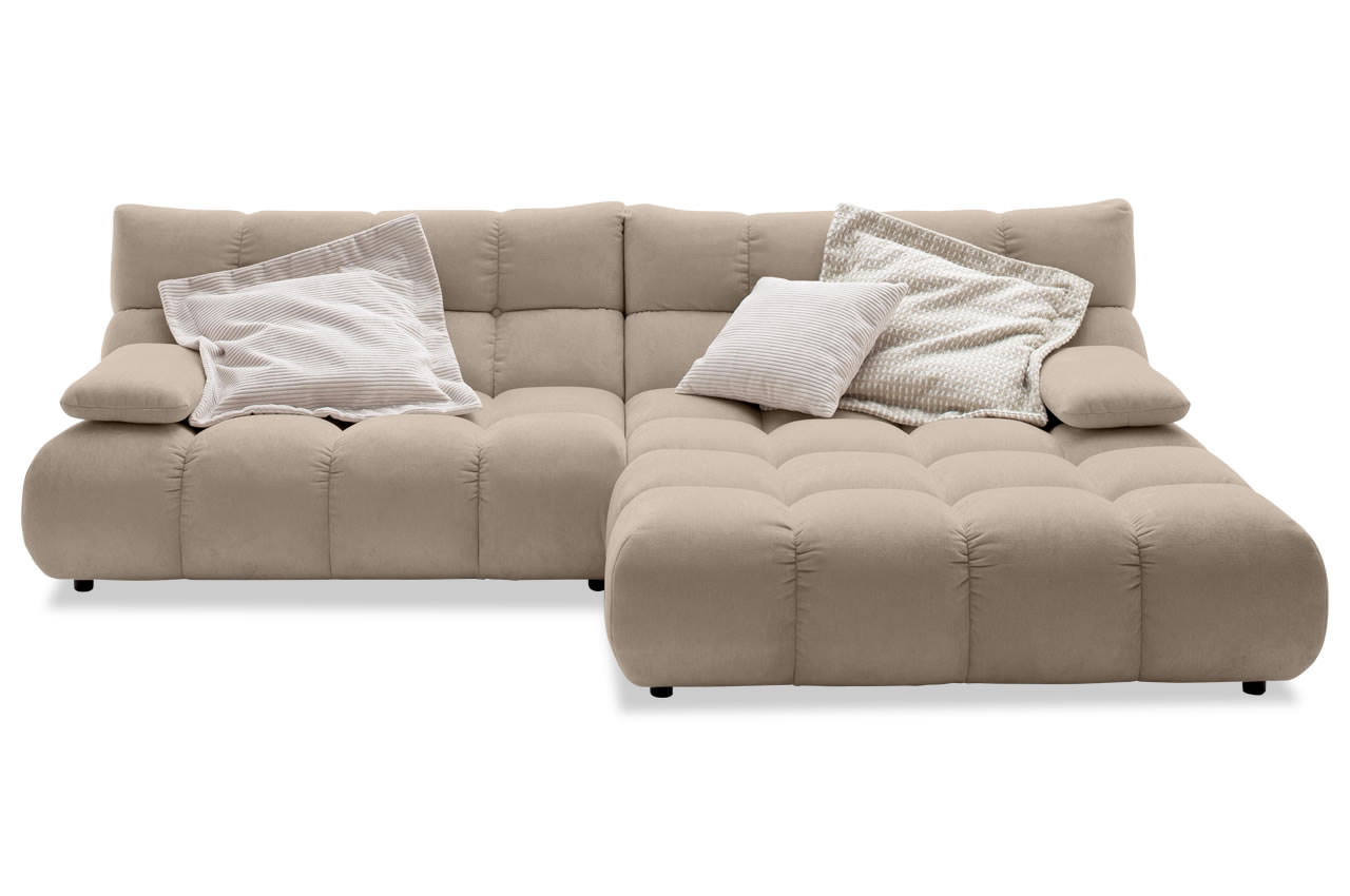 Das Ecksofa Graceland von Candy vereint voluminöse Polsterung, modernes Design und einladenden Lounge-Charakter zu einem echten Wohlfühlmöbel. Mit seiner großzügigen Form und der markanten Steppung bringt es Stil und Gemütlichkeit in jeden Wohnraum. Ob zum Abschalten, Lesen oder für gesellige Stunden – Graceland bietet reichlich Platz und hervorragenden Sitzkomfort.