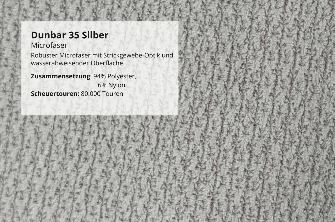- Microfaser Dunbar: Moderner Stoff in Strickgewebe-Optik mit feiner Struktur und wasserabweisender Oberfläche – pflegeleicht, robust und stilvoll zugleich.