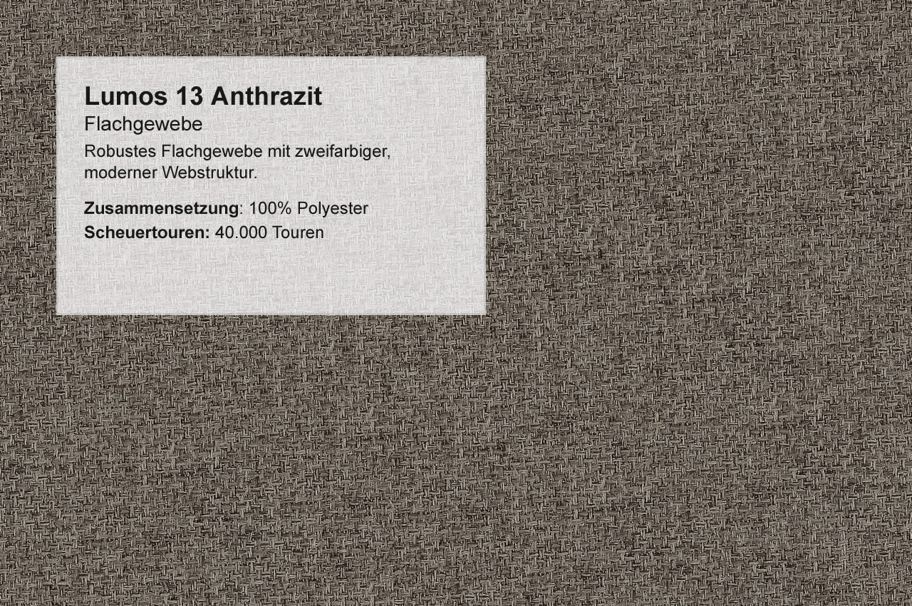 - Flachgewebe Lumos: Das Flachgewebe ist robust und pflegeleicht mit einer zweifarbig modernen Webstruktur.