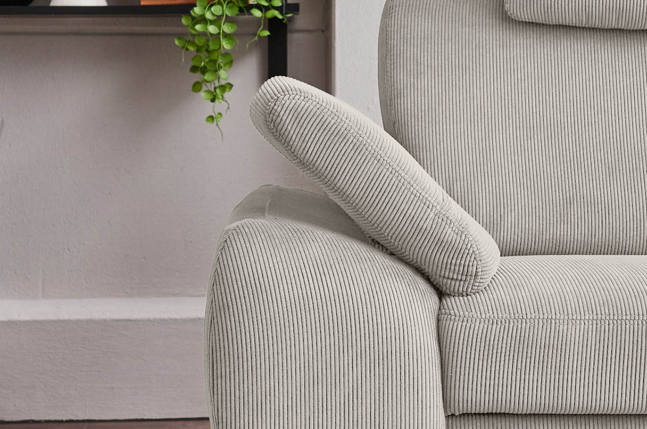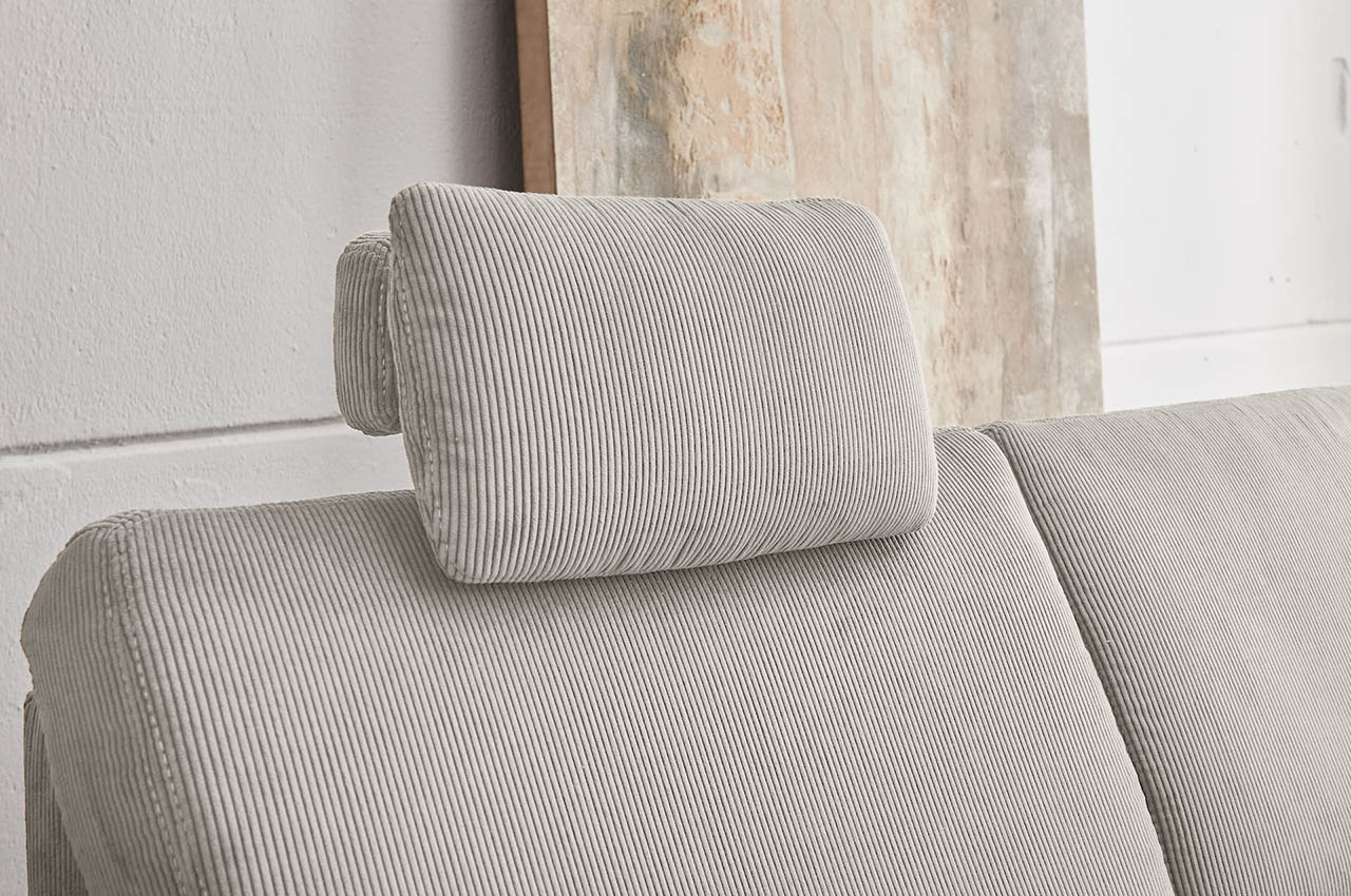 - 2 Kopfstützen (optional): Wählen Sie das Sofa mit zwei Kopfstützen, wenn Sie an ausgewählten Sitzplätzen zusätzlichen Komfort wünschen. Sie erhalten eine normale Kopfstütze PK (50x28x23 cm) sowie eine Premiumkopfstütze PKS (72x17x15 cm). Beide Varianten sind in Höhe und Neigung verstellbar.