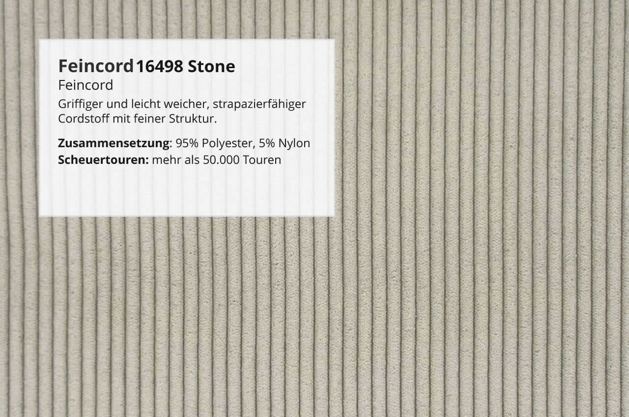 - Feincord: Der Cordstoff ist griffig, leicht weich und besitzt eine robuste, feine Rippenstruktur.