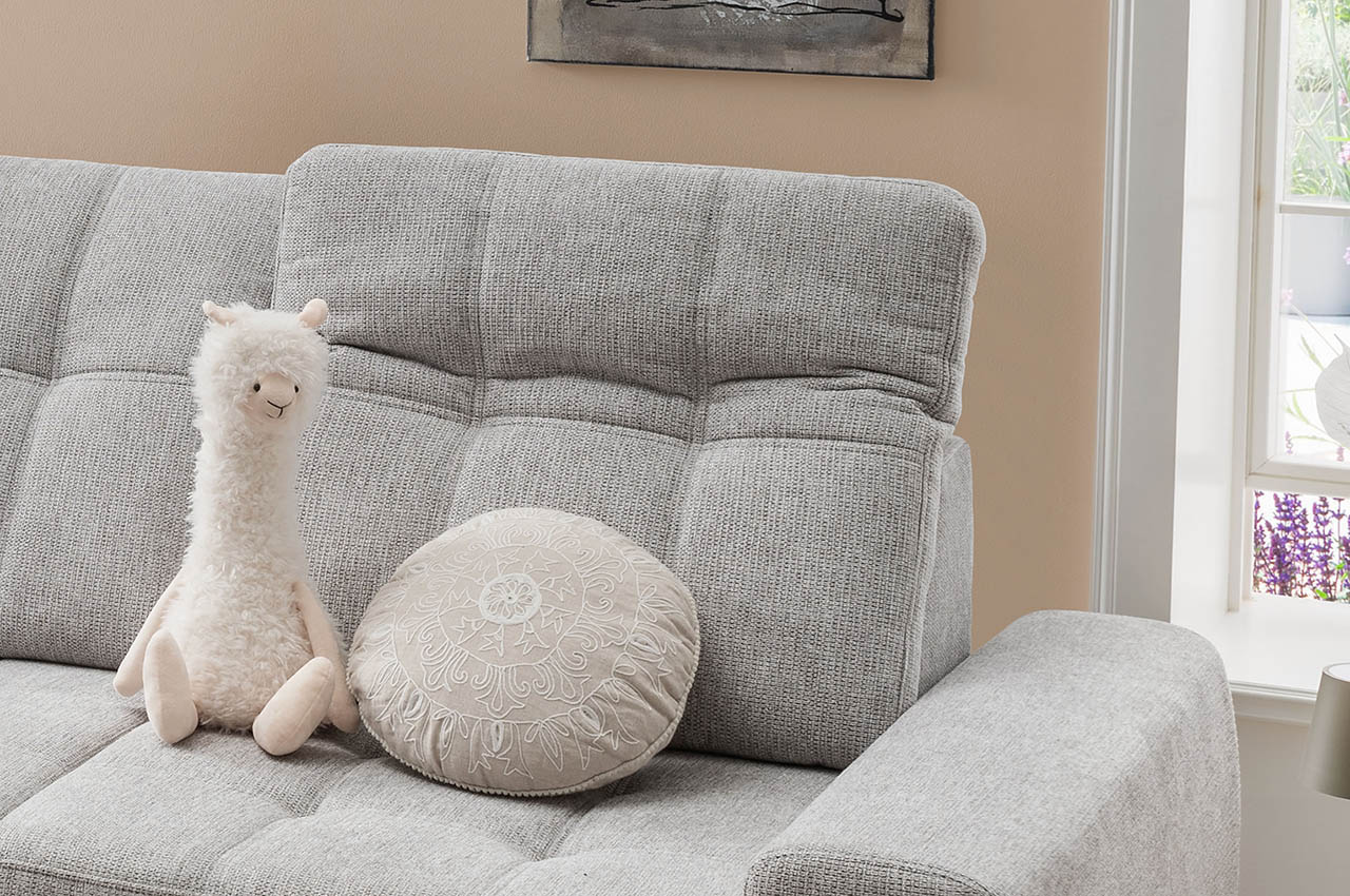 Eckcouch mit Kopfteil- und Sitztiefenverstellung