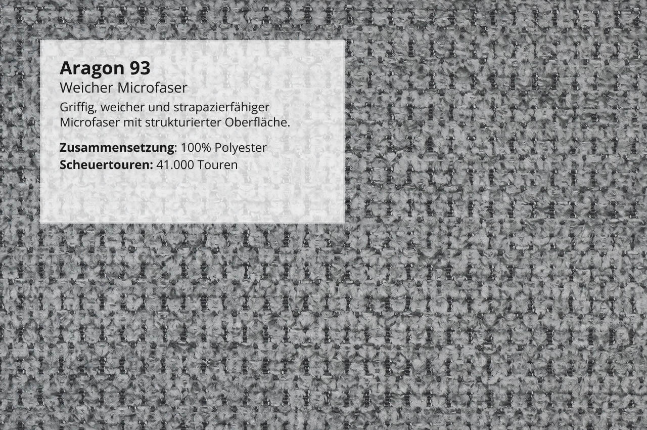 - Weicher Microfaser Aragon: Strapazierfähig und pflegeleicht mit griffiger, strukturierter Oberfläche und angenehm weicher Haptik.