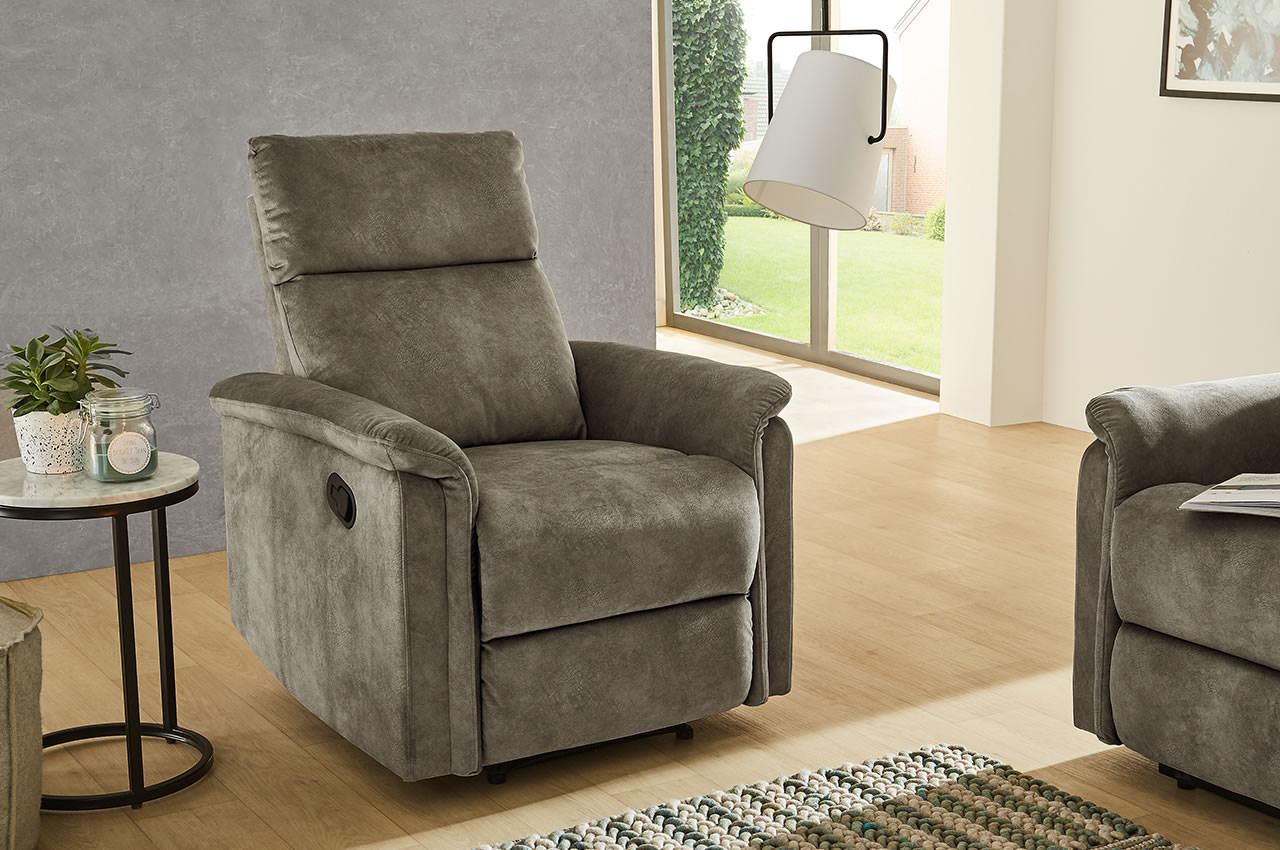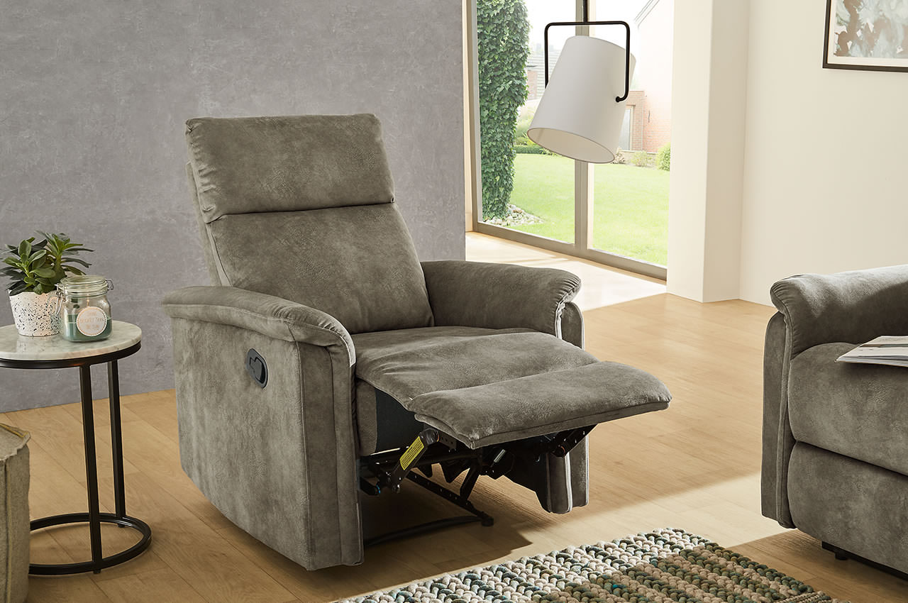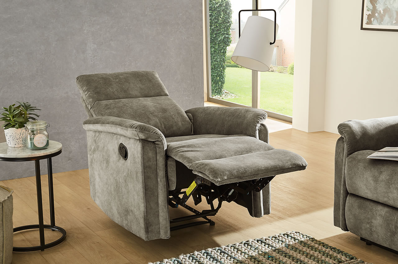 - Relax-Funktion (manuell): Für noch mehr Komfort verfügt der Sessel über eine integrierte Relaxfunktion. Diese wird manuell über einen Bedienschalter in der Armlehne ausgelöst. Rückenlehne und Fußteil bewegen sich durch eine unterstützende Mechanik fast von allein in die gewünschte Position – ideal, um sich bequem anzulehnen, die Beine hochzulegen und eine kleine Auszeit vom Alltag zu genießen.