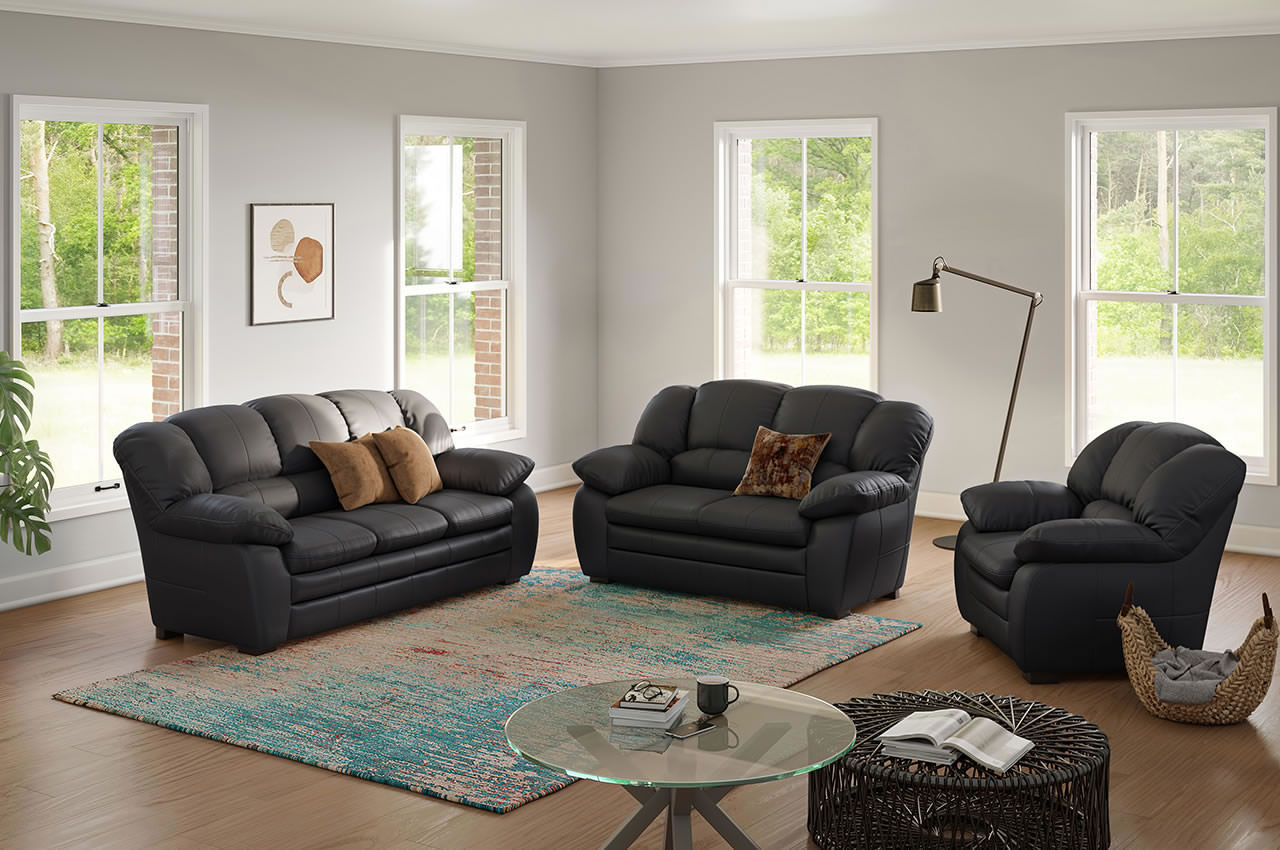 Die Garnitur Casino in hochwertigem Echtleder verbindet zeitlose Formgebung mit langlebiger Qualität. Mit ihren sanft gerundeten Armlehnen und der harmonischen Linienführung strahlt sie Eleganz und Behaglichkeit zugleich aus – ideal für alle, die im Wohnzimmer Wert auf Stil und Komfort legen.