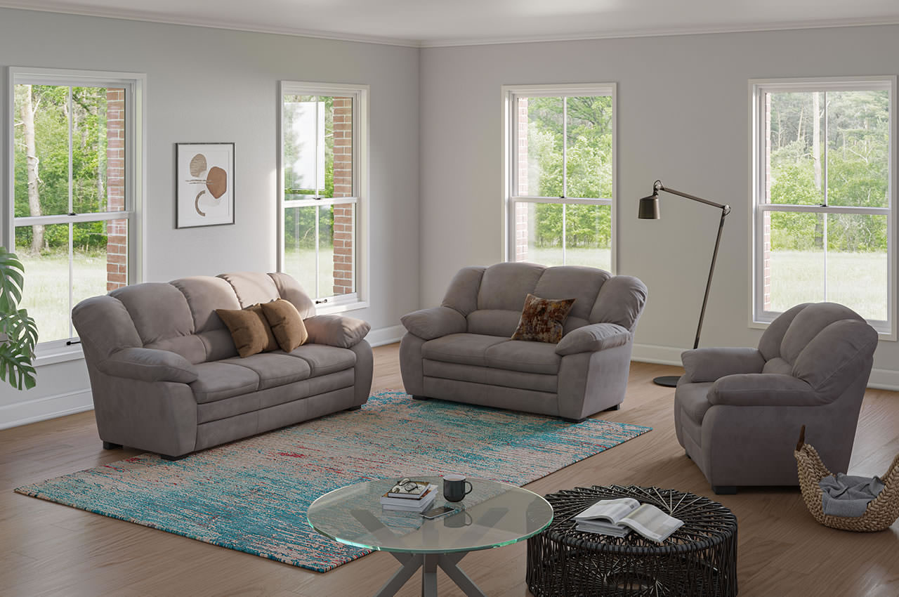 Die Garnitur Casino besteht aus einem 3-Sitzer, 2-Sitzer und Sessel und bringt mit ihrem zeitlosen Design und den sanft gerundeten Armlehnen ein wohnliches Ambiente in Ihr Zuhause. Durch die gleichmäßige Linienführung und die komfortable Polsterung entsteht ein stimmiges Gesamtbild, das zu entspannten Stunden mit Familie und Freunden einlädt.