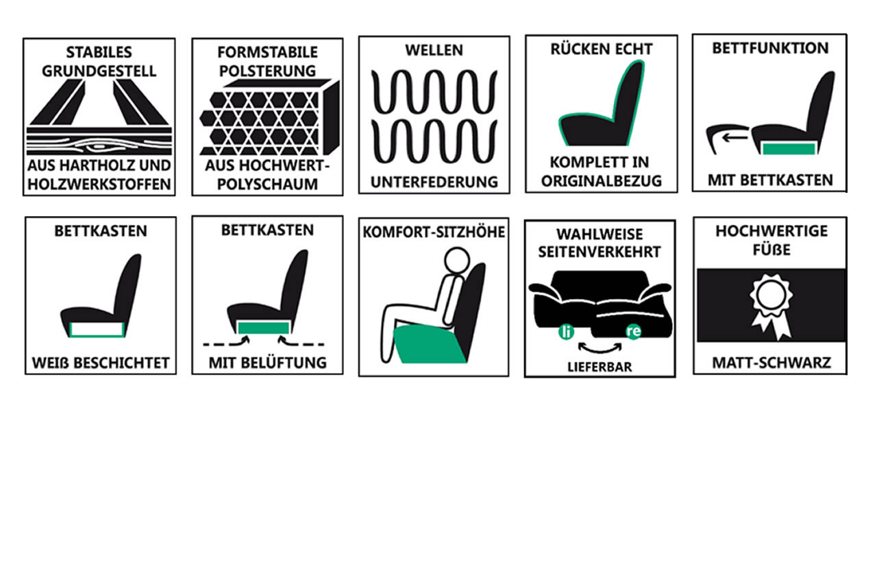 Ecksofa Oregani links - mit Schlaffunktion und Bettkasten