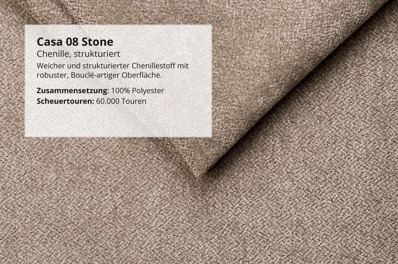 •  Chenille, strukturiert: Der Stoff ist angenehm weich und hat eine strukturierte Oberfläche in leichter Bouclé-artiger Optik.