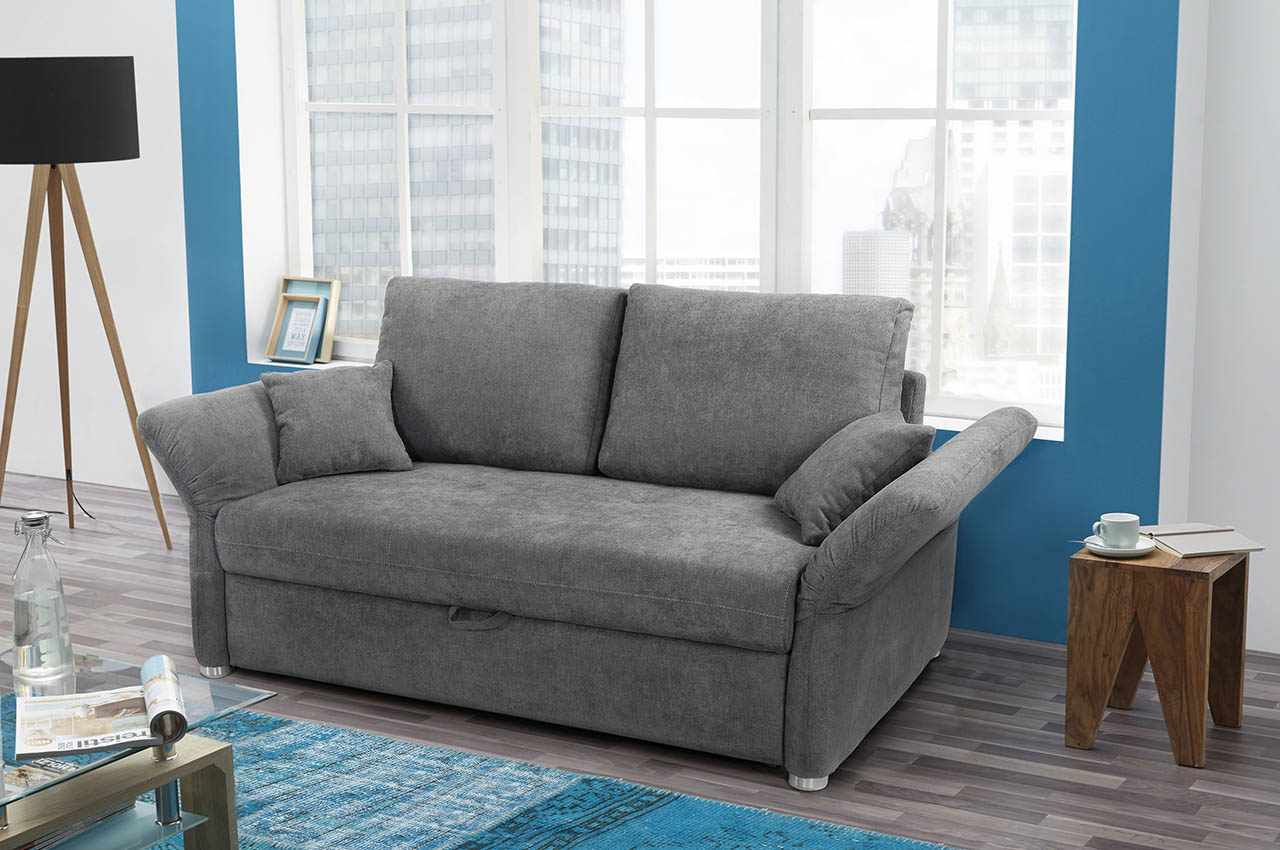 Das Schlafsofa Luca ist kompakt gebaut und eignet sich gut für kleinere Wohnräume. Die weichen Formen und die gepolsterten Armlehnen sorgen für eine gemütliche, einladende Optik. Durch seine Größe lässt sich das Sofa flexibel einsetzen – im Wohnzimmer, im Kinder- oder Jugendzimmer oder auch in Ferienwohnungen.