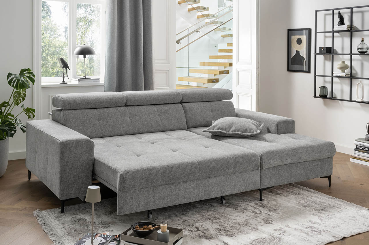 Benformato Ecksofa Neapel rechts - mit elektrischer XXL-Sitztiefenverstellung
