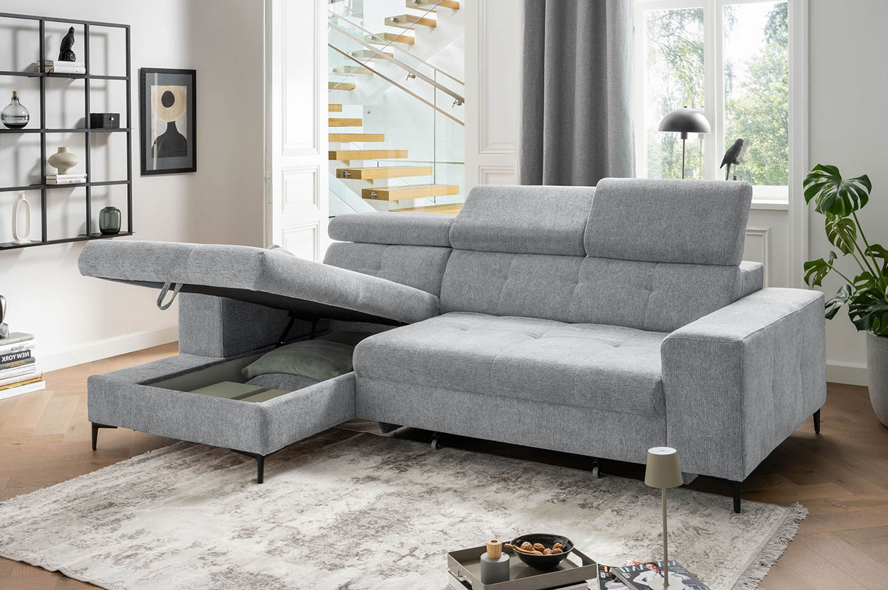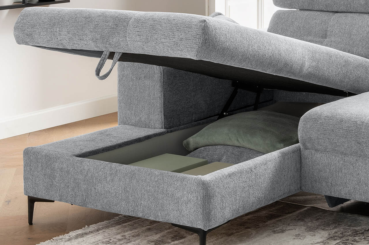 Sofa mit Kopfteilverstellung und Stauraum