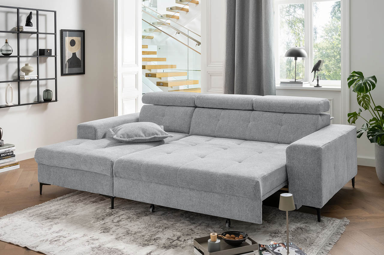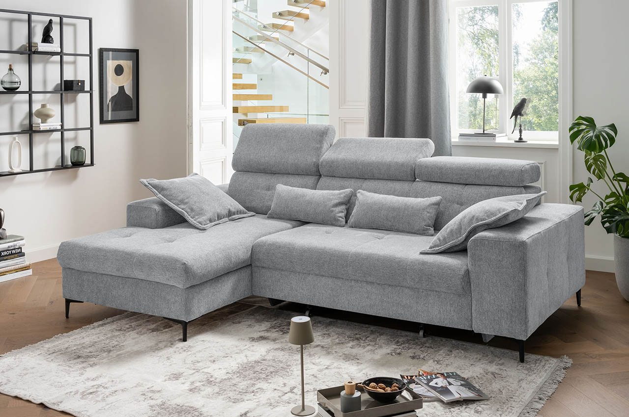 Benformato Ecksofa Neapel links - mit elektrischer XXL-Sitztiefenverstellung